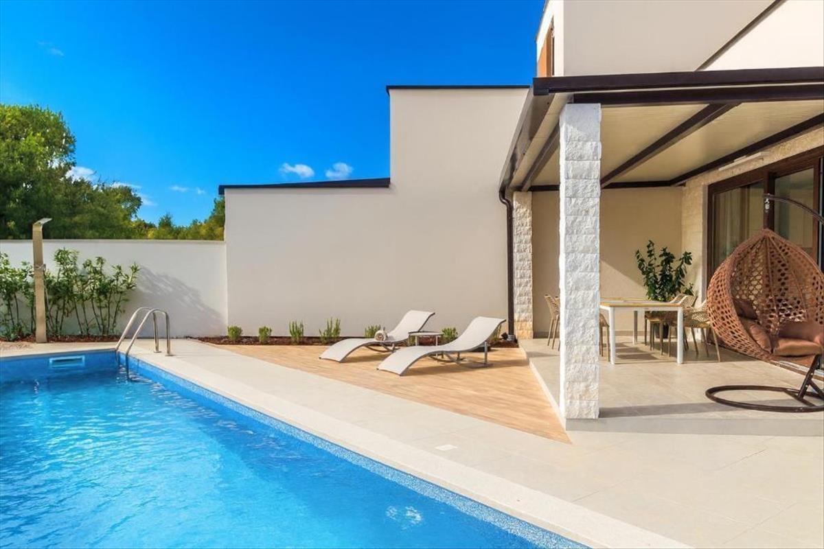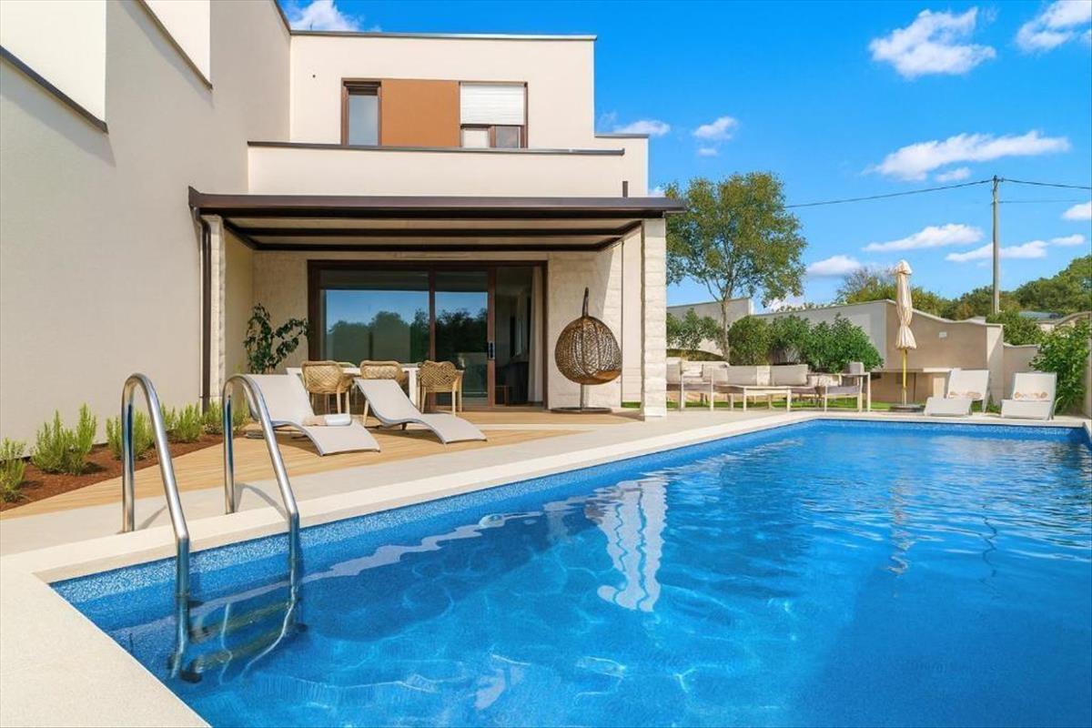 A csendes vidéken, Svetvinčenat közelében, Isztria szívében található ez a 2023-ban épült modern villa medencével, amely kivételes lehetőséget kínál azok számára, akik kortárs otthont vagy magas színvonalú befektetési ingatlant keresnek, mindössze 15 kilométerre az Adriai-tengertől. a villa egy nyugodt és bájos településen helyezkedik el, amely autentikus élményt nyújt egy hagyományos isztriai faluból, biztosítva a magánéletet, a nyugalmat és a laza mediterrán légkört, miközben kényelmesen elérhetők a nagyobb isztriai városok és az összes alapvető szolgáltatás.