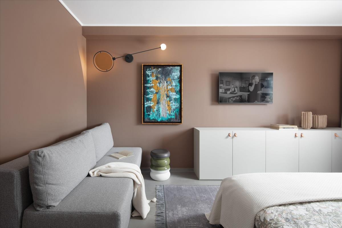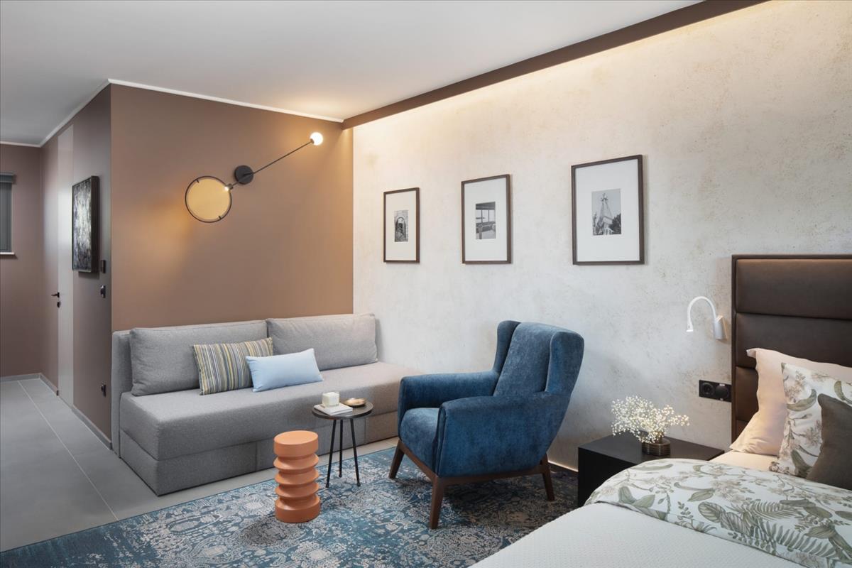 Belső terét az open-concept lakóterek figyelembevételével tervezték. a tágas nappali, étkező és teljesen felszerelt konyha egy világos, napfényes térben egyesül, nagy tolóüveg falakkal, amelyek egy luxus teraszra nyílnak. Ez a zökkenőmentes átmenet a beltér és a kültér között természetes kapcsolatot teremt a környezettel.