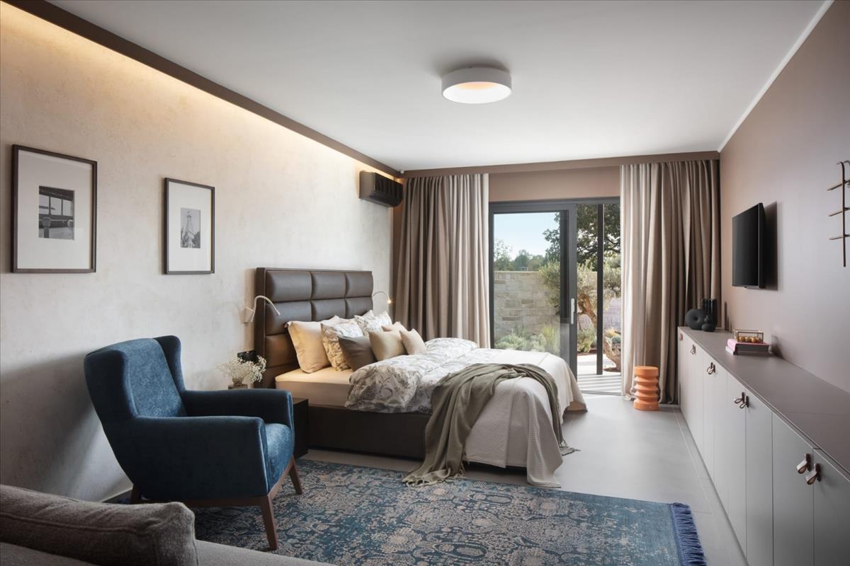 A villa egy 954 négyzetméteres telken helyezkedik el, és 200 négyzetméternyi elegáns, egy szintes lakóteret kínál. Mindössze négy perces autóútra található a festői Limski Kanal-tól, és egy 12 kilométeres kerékpárúton kapcsolódik Rovinjhoz, amely egykori vasúti vonalon épült – ideális módja a környék felfedezésének, békés és környezetbarát módon.