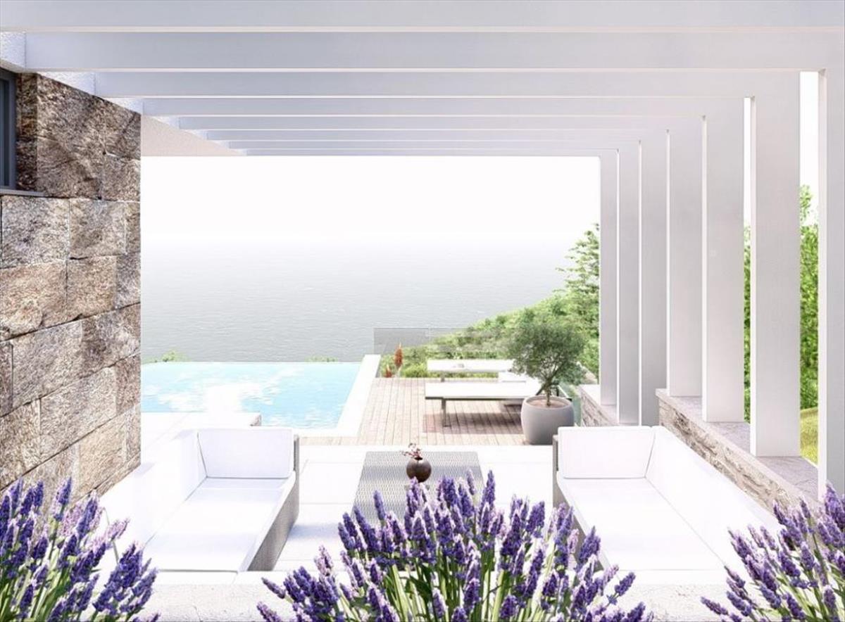 Gyönyörű modern lépcső vezet a ház második emeletére, ahol három hálószoba található saját fürdőszobával. Minden szobából felbecsülhetetlen értékű és akadálytalan kilátás nyílik a kék tengerre a nagy üvegajtókon keresztül, amelyek nemcsak gyönyörű kilátást garantálnak, hanem meleget és fényt is biztosítanak egész évben. Minden szobából elérhető egy szép 25 négyzetméteres terasz, amely a villa déli oldalán húzódik. Ezenkívül a nyitható és zárható fa tónusú panelek teljes magánéletet és védelmet nyújtanak a verőfényes napsütéssel szemben a meleg nyári napokon.