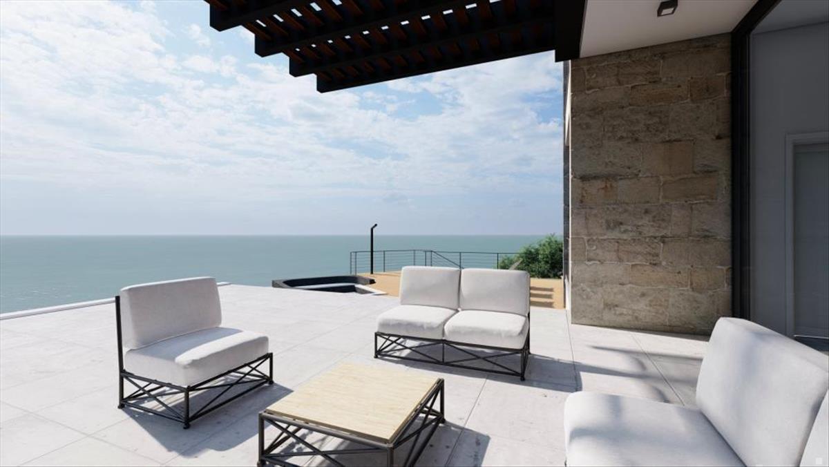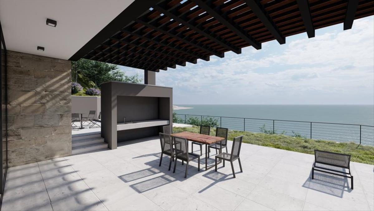 A villából a tengerre nyíló panoráma végtelenül tárul eléd, lenyűgöző hátteret hozva létre, amely valóban megdöbbentő.