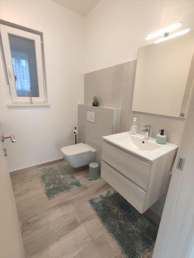 A belső lépcsőn felmenve az egyik az emeletre vezet, ahol további két hálószoba vár, mindegyik saját fürdőszobával. Innen ki lehet lépni a körülbelül 25 négyzetméteres nagy teraszra, ahonnan csodálatos kilátás nyílik a csillogó tengerre és a fenséges Brijuni-szigetekre.