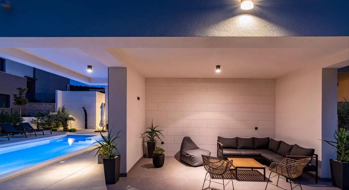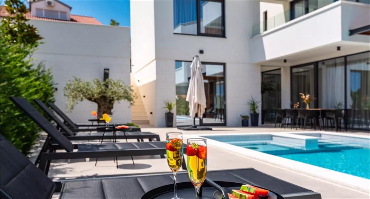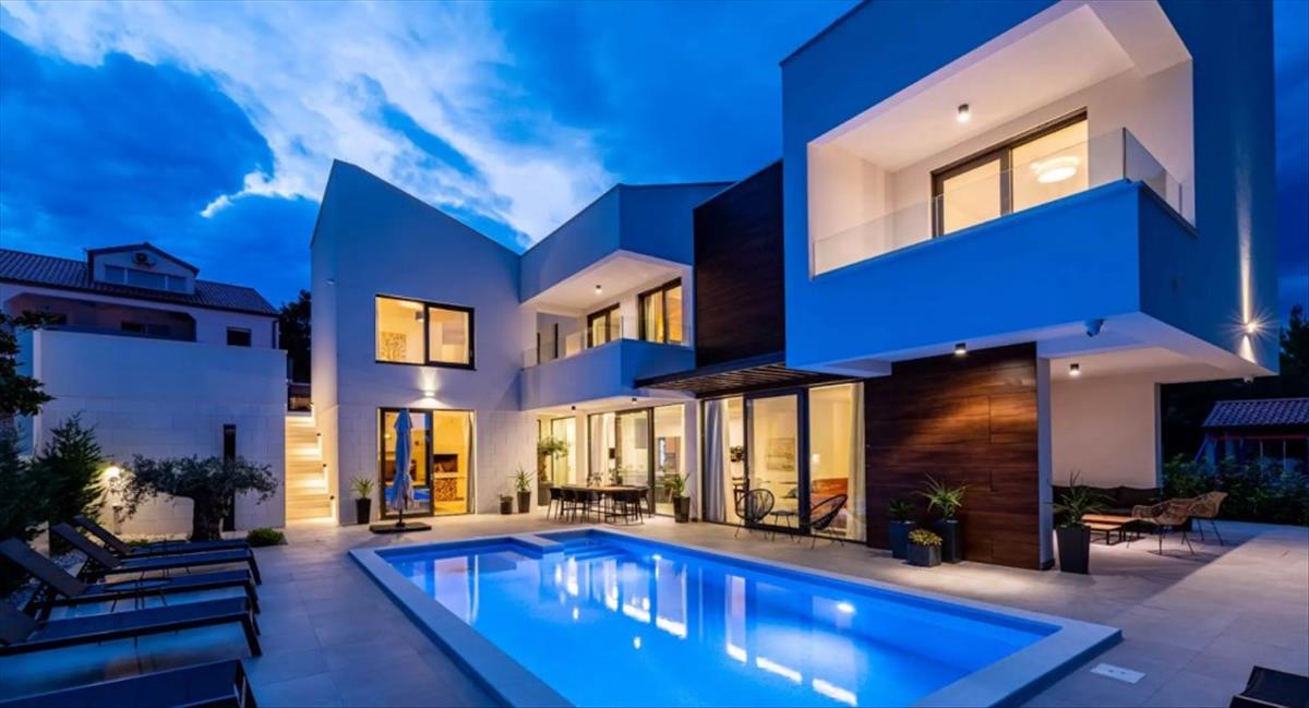 Modern és fényűző villa úszómedencével, Novigrad közelében, Zadar környékén, mindössze 160 méterre a strandtól.