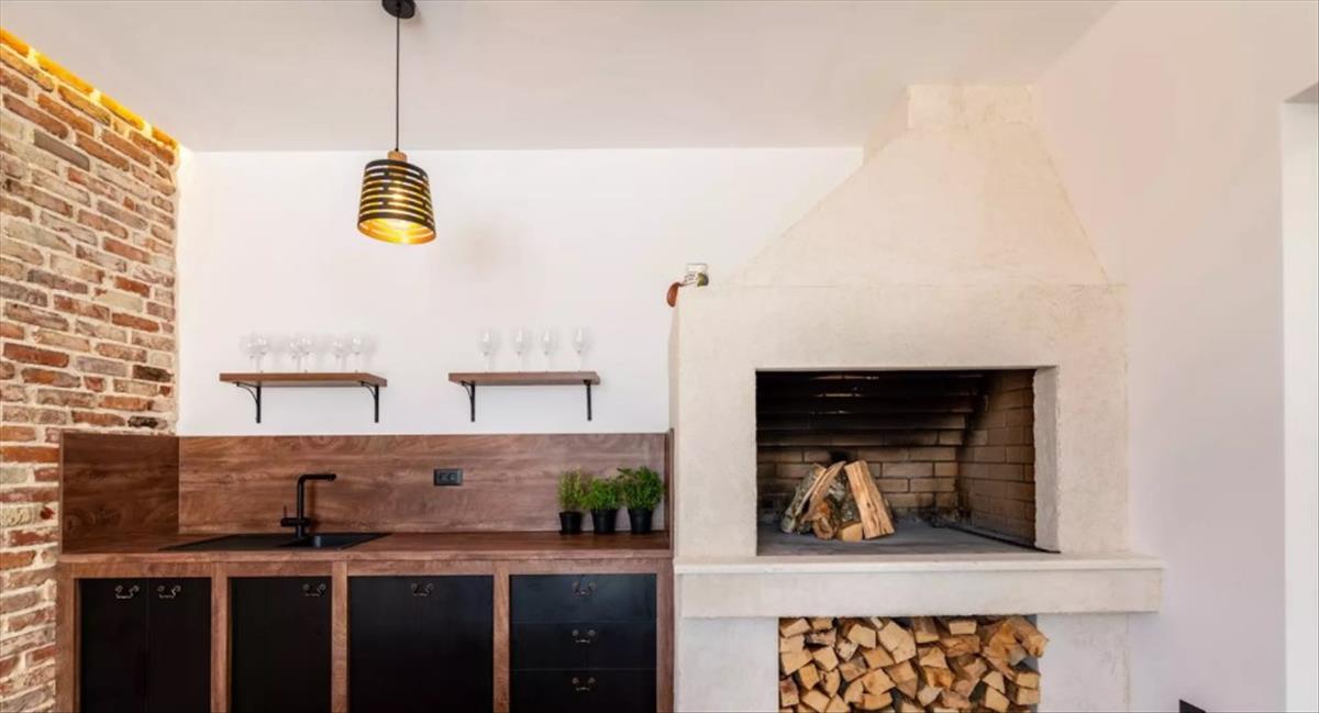 A földszinti szobák elrendezése előszoba, wc, konyha étkezővel és nappalival, borospince, taverna (grillezővel) és részben fedett teraszból áll.