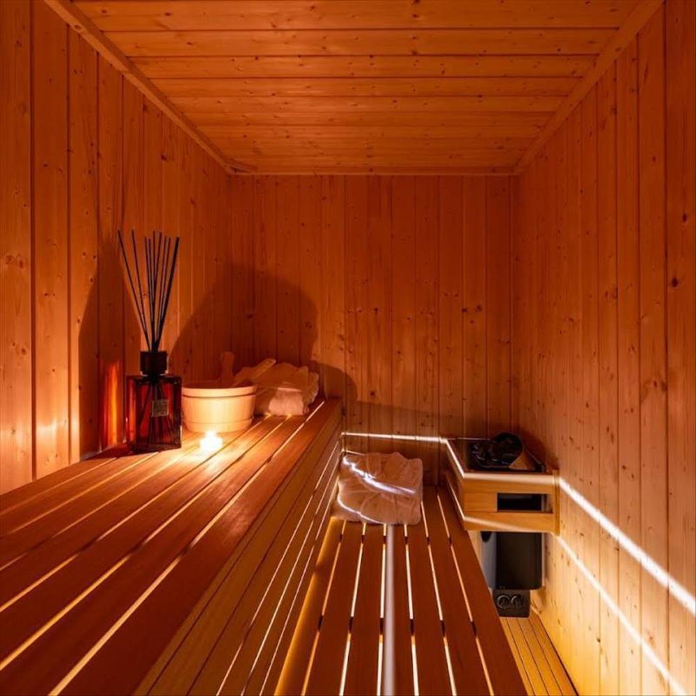 A földszinten található egy szauna és két hálószoba fürdőszobával és kijárattal a teraszra.