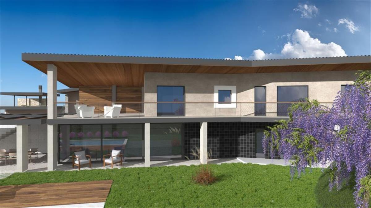 A teret úgy alakítjuk ki, hogy a villa földszintjén egy tágas, fedett teraszra és kertre nyíló nappali konyhával, majd 1 hálószoba, fürdőszoba, vendég wc és mosókonyha kerül kialakításra. Belső lépcső vezet az emeletre, ahol 3 hálószoba, 2 fürdőszoba és egy nagy, fedett terasz található nappalival. a főszoba a kertre nyílik.