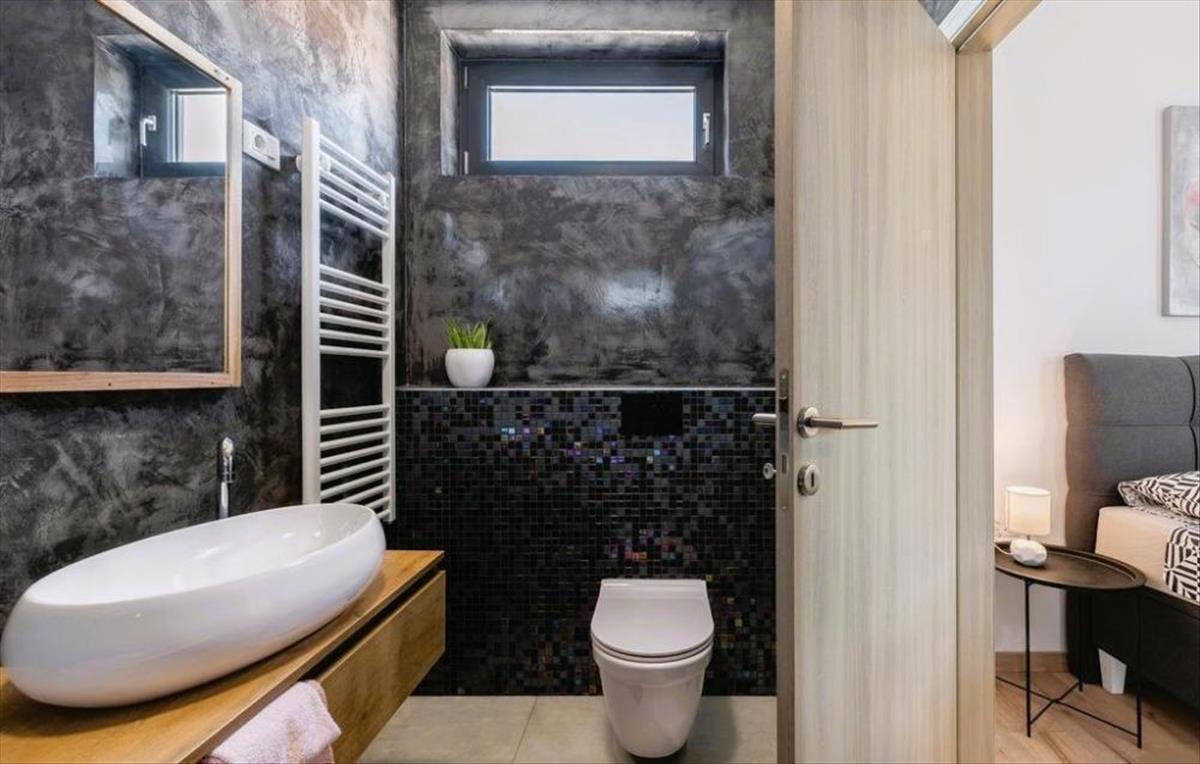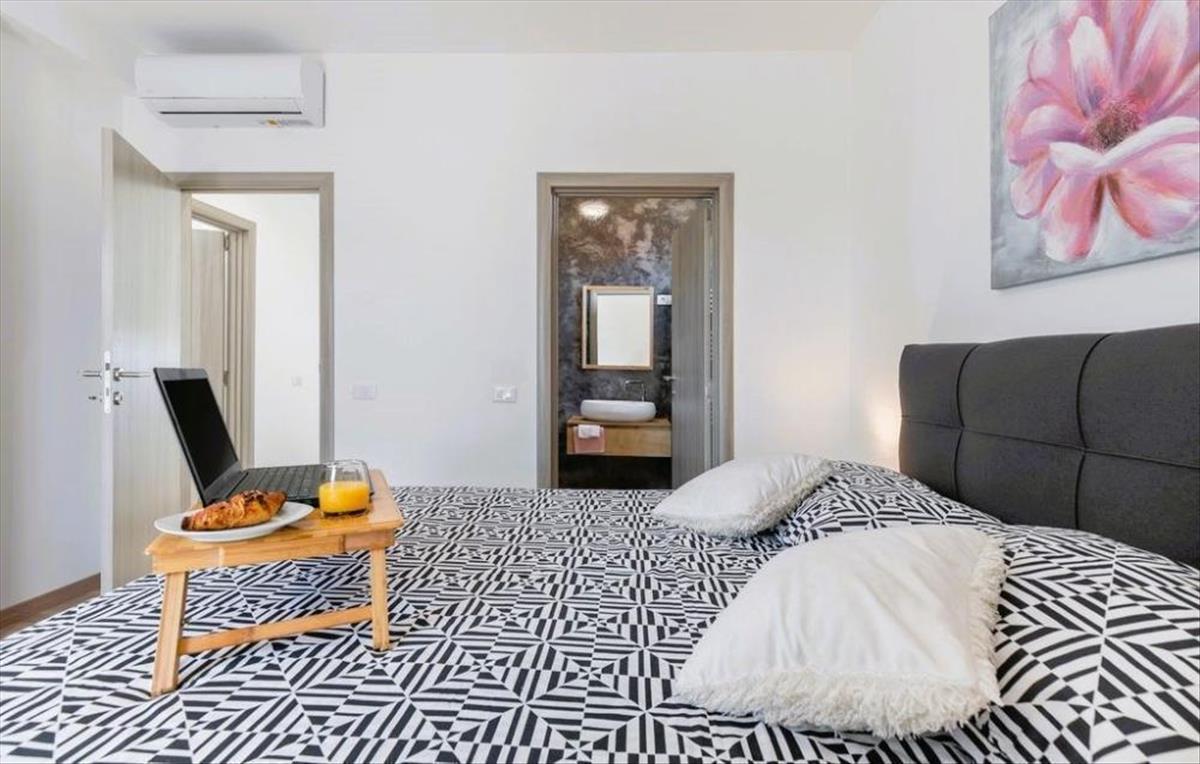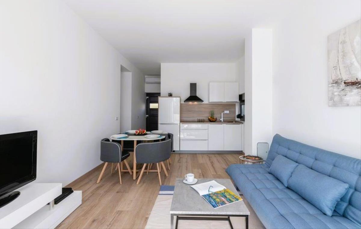 A lakórész három lakóegységből áll, így a földszinten két, egyenként 52 m2 alapterületű szállás található, két hálószobával, fürdőszobával és konyhával, míg az emeleten egy nagyobb lakóegység, 104 m2 alapterülettel, három hálószobával. Nappali konyhával és étkezővel, valamint közvetlen kijárat a szabadtéri teraszra, ahonnan részleges kilátás nyílik a tengerre.