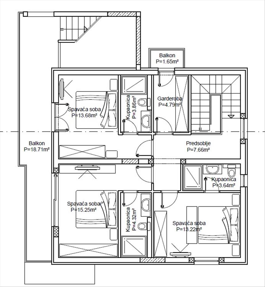 A második emeleten három gyönyörűen berendezett hálószoba található, mindegyik saját fürdőszobával és hozzáféréssel egy privát teraszhoz. Ezen a szinten egy nagy gardrób is helyet kapott, amely növeli a villa funkcionalitását és luxus vonzerejét.