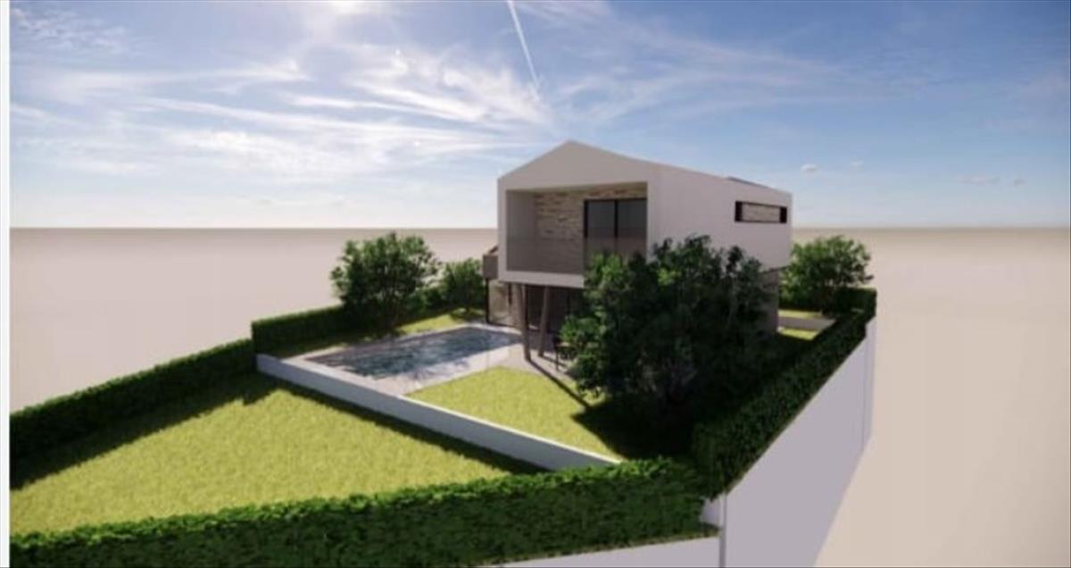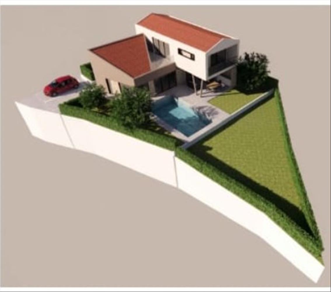 Ez a dizájner villa úszómedencével, panorámás kilátással a tengerre és a szigetekre egy Krnicához tartozó kis faluban épül.