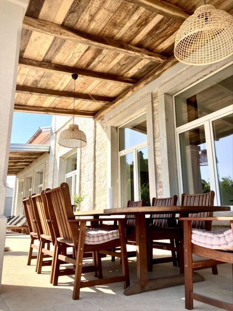 Az úszómedence mellett egy gyönyörű napozórész, egy szabadtéri fedett étkező és egy fedett társalgó található. Az udvaron grillezővel ellátott taverna is található.