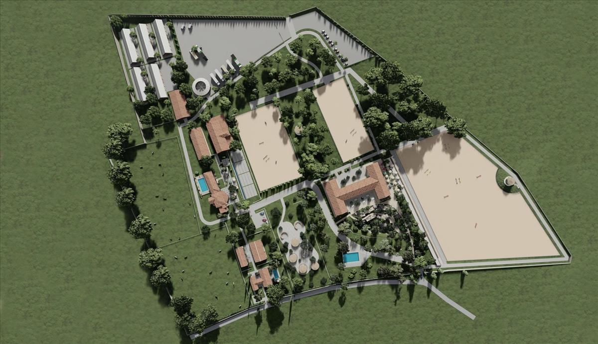 A komplexumban található egy lakóház, egy étterem, valamint több szállásegység, beleértve hálószobákat és apartmanokat, lehetővé téve egy teljesen működőképes turisztikai vagy vendéglátó üzlet működését. Az infrastruktúra jól kiépített, beleértve a városi vízcsatlakozást, a magánkútot és fúrt kutat, földalatti öntözőrendszereket az összes mezőn, vízelvezető rendszereket, valamint egy dedikált elektromos alállomást 45 kW kapacitással, biztosítva a teljes működési függetlenséget és hatékonyságot.