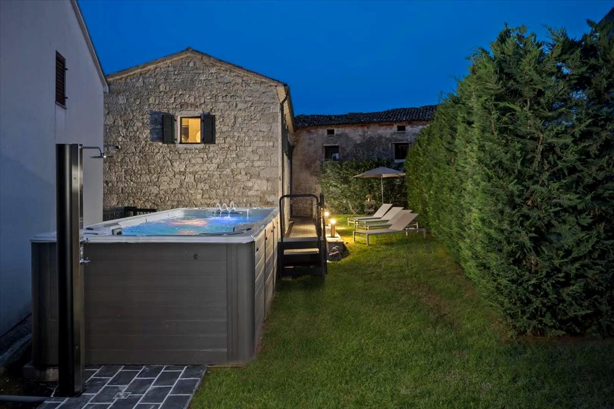 Az eladó villa mesterien felújított egy eredeti kőépületből, megőrizve történelmi lényegét, miközben kifinomult, kortárs dizájnt integrált. Az eredmény a hagyomány és a modern luxus harmonikus kombinációja. a 315 négyzetméteres lakóterület egy 574 négyzetméteres telken helyezkedik el, két szinten terül el, és tartalmaz egy tágas nappalit, egy teljesen felszerelt konyhát étkezővel, négy fürdőszobás hálószobát, egy billiárdszobát, két vendég WC-t, egy mosókonyhát és egy tárolóhelyiséget. Ez a kivételes ingatlan több mint egy otthon; ez a békés vidéki élet, az időtlen esztétika és a prémium kényelem élménye. Ideális luxus családi rezidenciának vagy befektetésnek Isztria egyik legkeresettebb helyszínén, amely mind a nyugalmat, mind a tengerhez, a kulturális örökséghez és Horvátország nyugati partjának dinamikus életstílusához való közelséget kínál. Ref: RE-U-41844