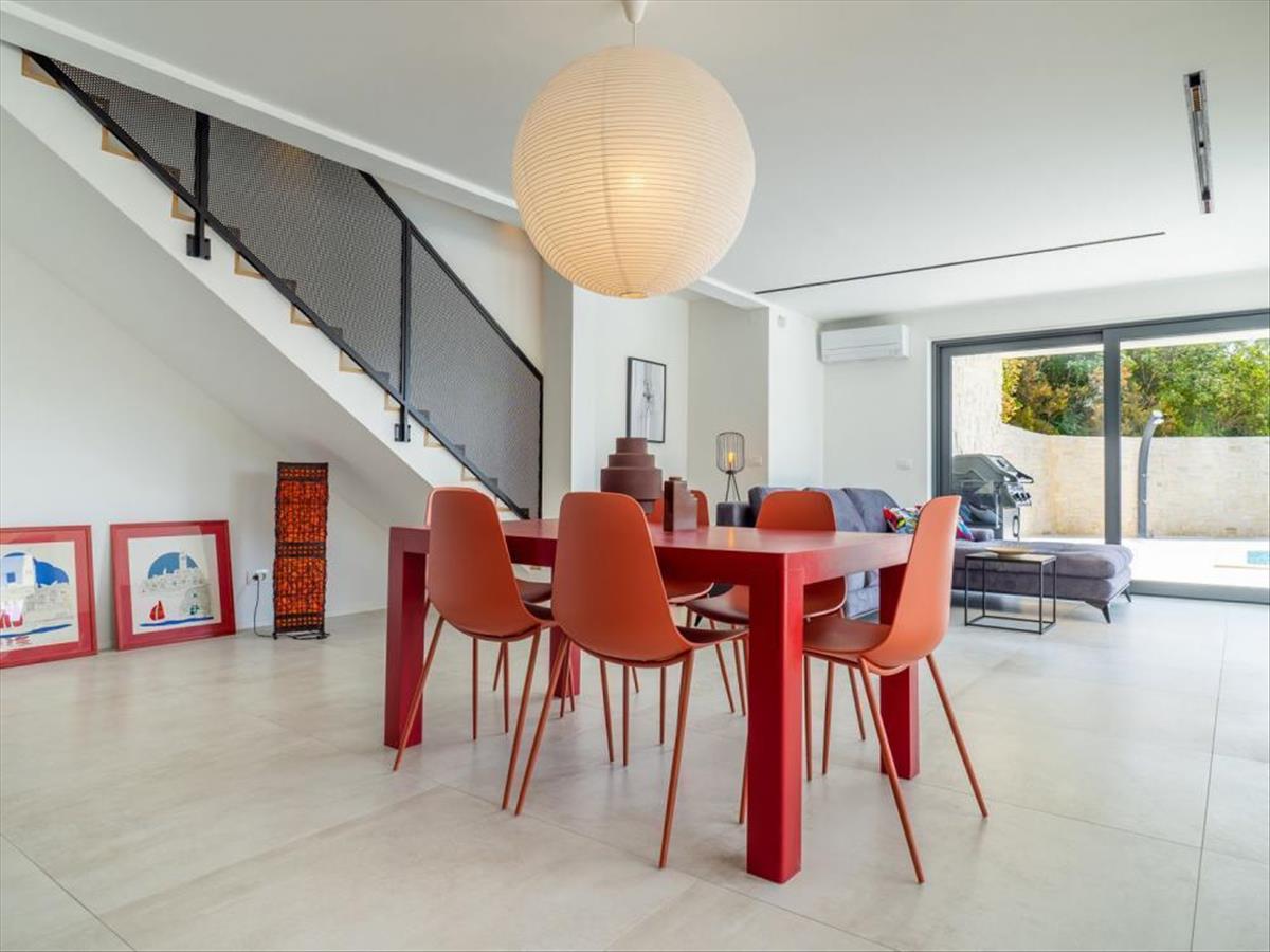 Gyönyörű luxus villa medencével a tenger közelében Vrbnikben, a tengerhez vezető első építési vonalon, zöldövezetben!
