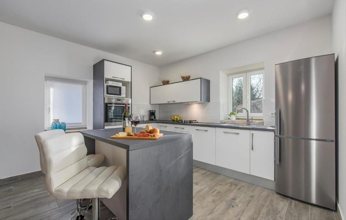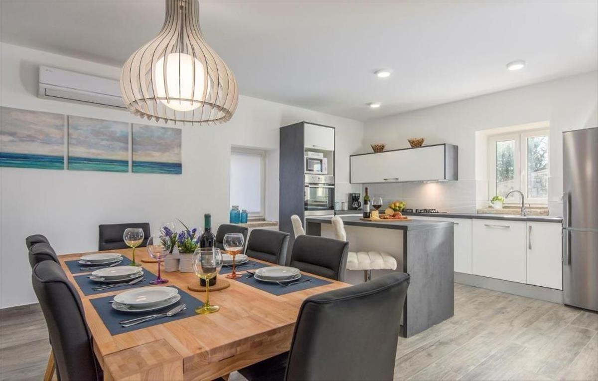 A 2020-ban teljesen felújított villa a modern kényelmet ötvözi a hagyományos isztriai bájjal, így olyan teret hoz létre, amely eleganciát áraszt.