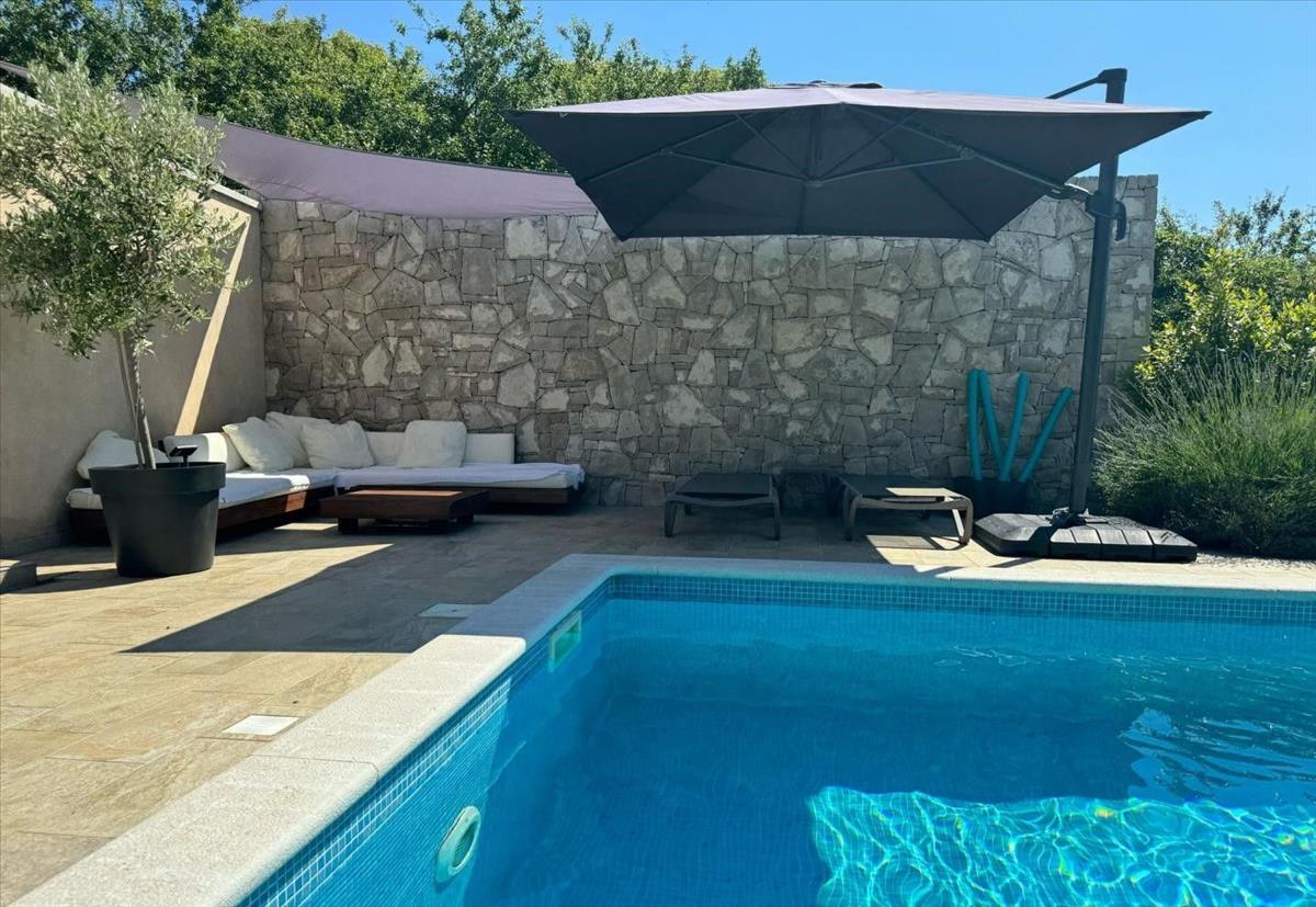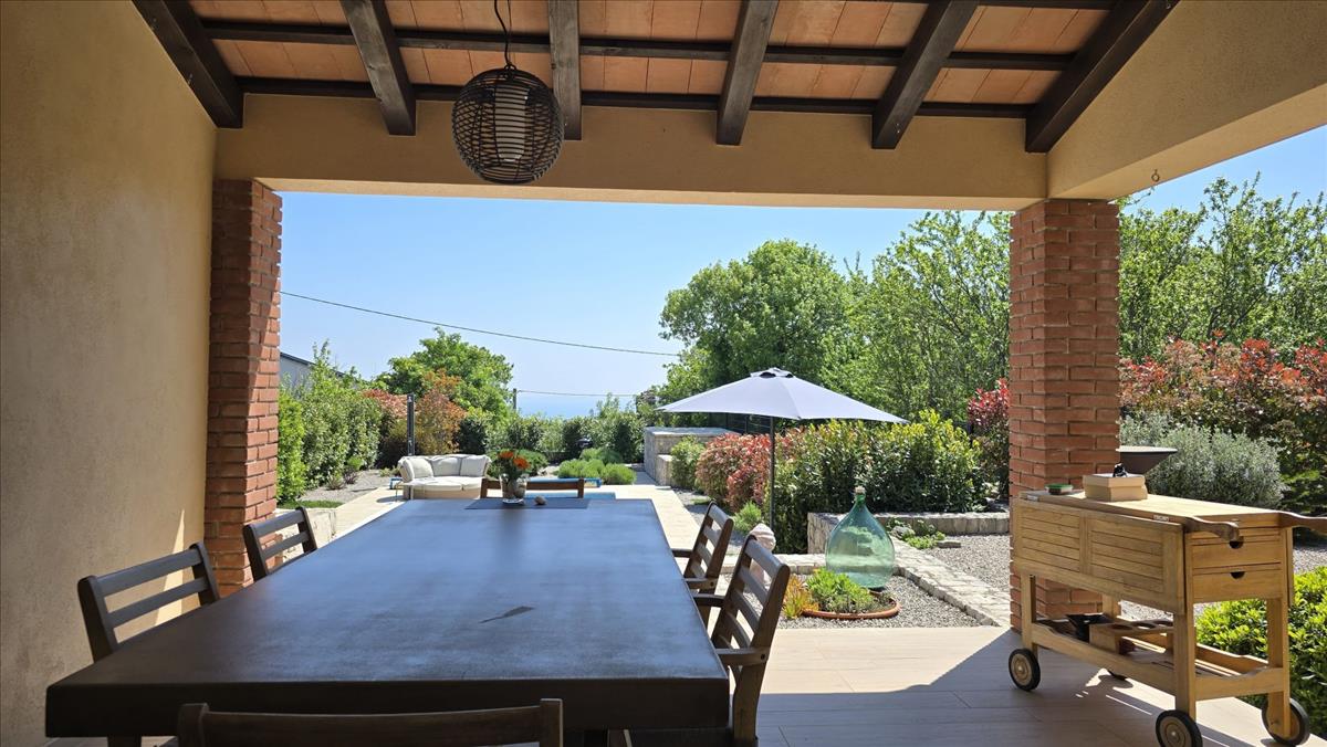 Ez a bájos mediterrán kőház egy napfényes dombtetőn helyezkedik el, ahonnan a csillogó Adriai-tengerre nyílik kilátás, a történelmi Pula és Opatija városai között. a festői Labin közelében található, ahol a régi világ bája találkozik a modern élettel, ez az otthon tökéletesen ötvözi az istriai hagyományt a kortárs eleganciával és kényelemmel.