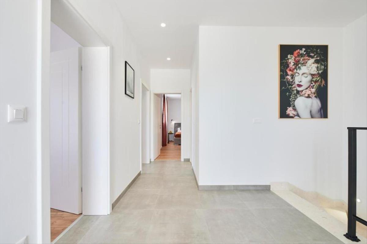 Felső szinten: két hálószoba kijárattal a teraszra és az erkélyre, fürdőszoba + hálószoba fürdőszobával és terasszal.