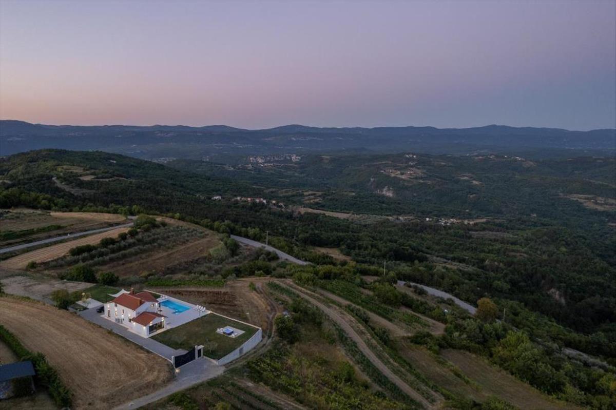 Buzet, egy bársonyos dombon fekvő bájos város, amelyet hatalmas kőfalak vesznek körül, és az isztriai gasztronómia isteni ízeivel gazdagodik. a szarvasgombák városaként elhíresült vadászterületei a Mirna folyó völgyének erdeiben találhatók. a régió legértékesebb tulajdonsága az érintetlen természeti szépsége. a lenyűgöző tájak zökkenőmentesen ötvözik a tengerparti és hegyi tájat, számos dombbal és a Mirna folyó völgyével tarkítva, lélegzetelállító kilátást nyújtva. Buzeština, amely magában foglalja Buzetet és környékét, az Isztria legészakibb részén található, Rijeka, Trieszt és Pula nagyvárosai között. Ez a változatos terület 10 métertől több mint 1000 méteres tengerszint feletti magasságig terjed, és 165 km²-t fed le.Buzet közelében, egy festői tisztáson eladó egy villa tágas kerttel, lenyűgöző kilátással.