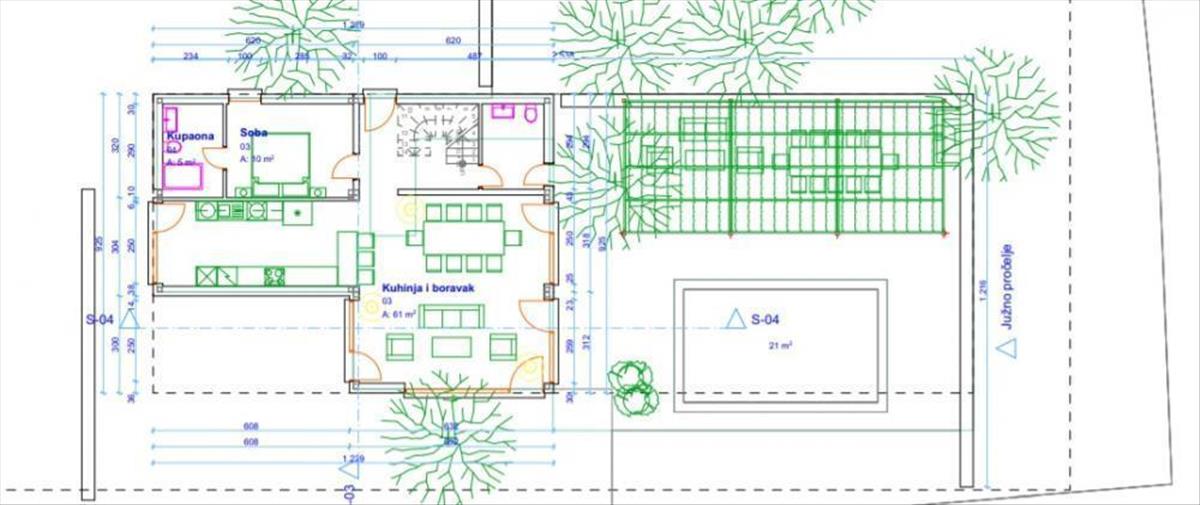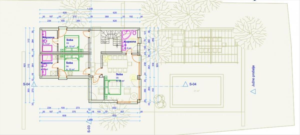 Van egy 5-6 villára épülő nyaralóközösség projekt. a telkek egymás után helyezkednek el a tenger első vonalától és feljebb.