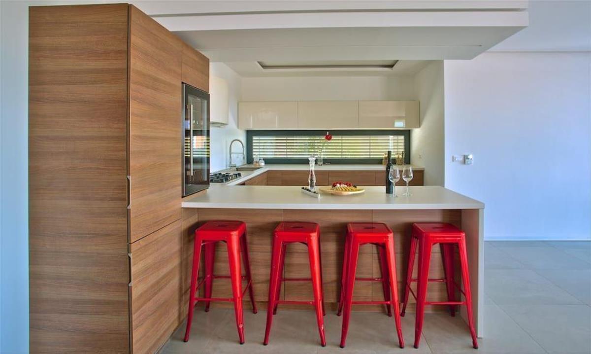 Modern csoda, óda az építészeti kifinomultsághoz, enyhe emelkedést ékesít, parancsoló panorámát a tengerre és a hullámzó tájra. a formák és árnyalatok tánca áthatja az építkezést és a belsőépítészetet, minimalista, mégis élénk, csábító és melegen hívogató szintézist eredményezve. a lakhely kiterjedt, nyitott terű kialakítása, amelyet bőséges ablakok koronáznak meg, a nap egész napos fényének csatornájává válik.
