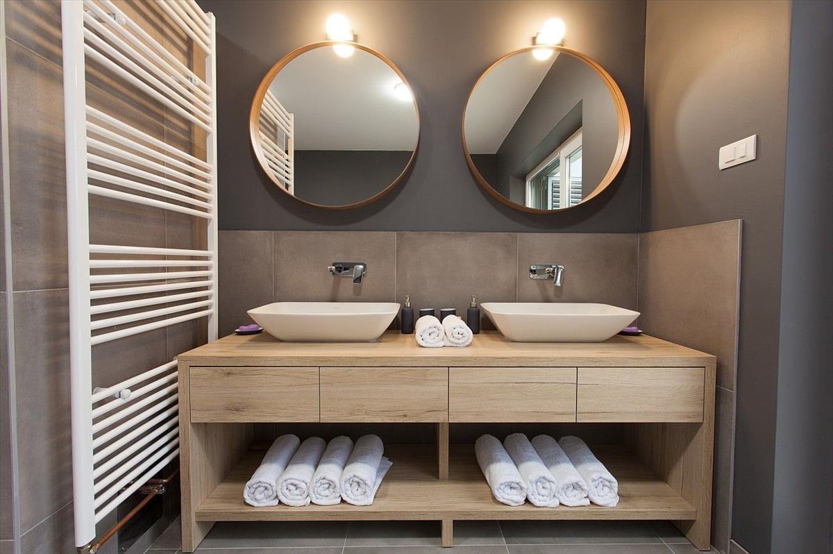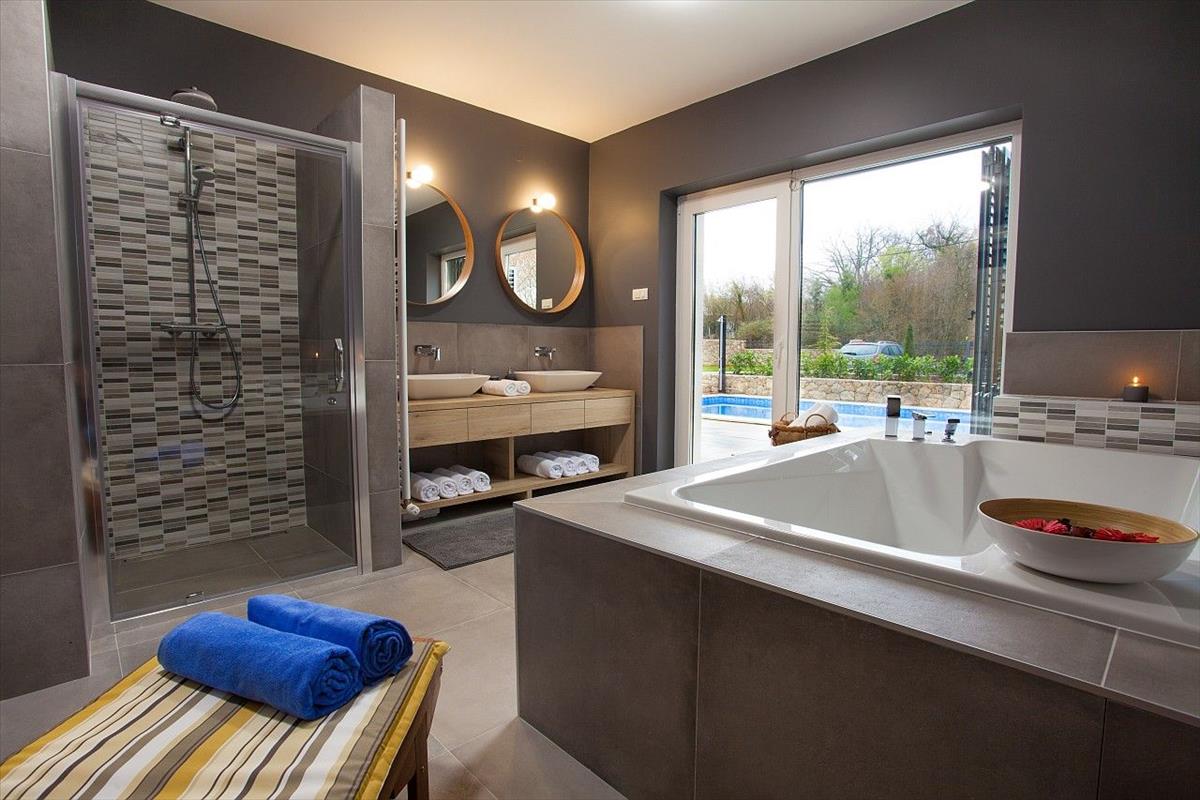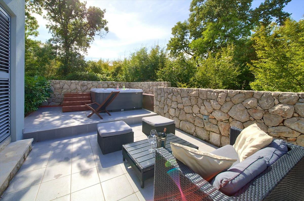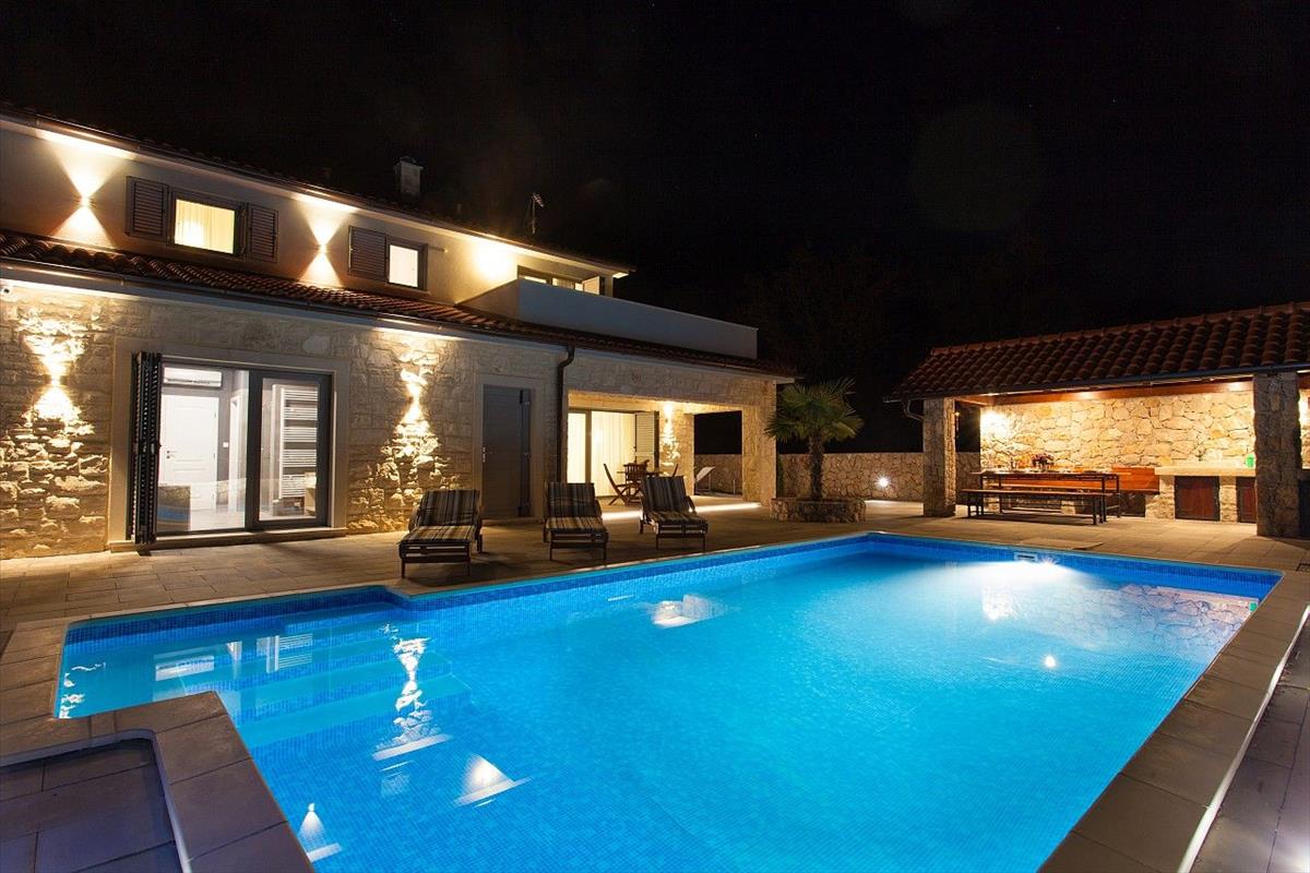 Ez a 185 négyzetméteres, önálló villa rusztikus külsőt ötvöz egy letisztult, modern belső térrel, és egy csendes helyen található, egy védett zöld zóna szélén, mindössze 5 kilométerre a tengertől Kras faluban, a Dobrinj környékén, Krk szigetén.