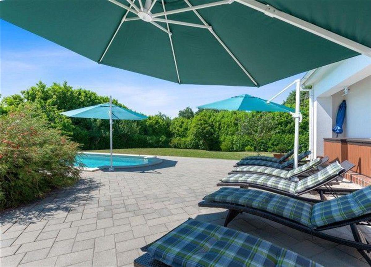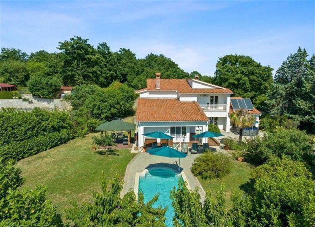 A villa impozáns kertje összesen 2269 m2-en terül el, melyet teljesen körülvesz egy fal és egy sűrű erdő, ami a magánélet és a béke maximális szintjét biztosítja. Míg a parkosított, gondozott udvar, amely a luxuspark érzetét kelti, tökéletesen illeszkedik a villa karakteréhez. Itt a virágzó cserjéktől és a fás szárú, színes virágú növényektől kezdve sokféle növényt, valamint számos idős fát találhatunk, amelyek nyáron tökéletes sűrű árnyékot biztosítanak. Az egész történetet egy fűtött medence teszi teljessé, amely kora tavasztól késő őszig használható.