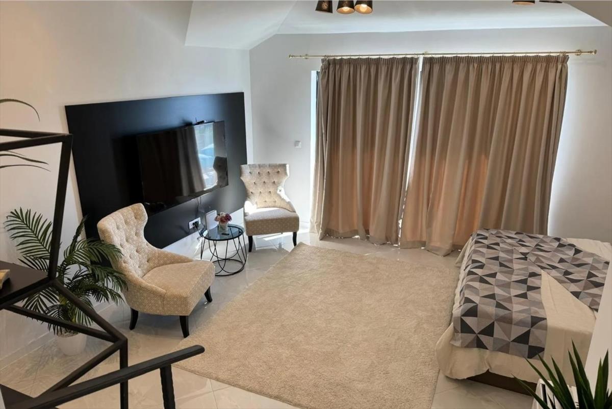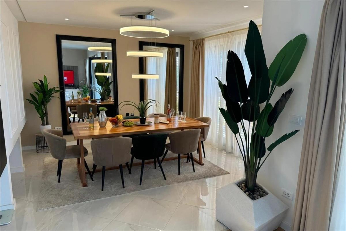 A villa három szinten helyezkedik el, és teljes egészében betonból készült, biztosítva a maximális szerkezeti szilárdságot és a hosszú távú tartósságot. a belső tér minden részletében a luxust és eleganciát tükrözi. Az open-plan nappali természetes fényben úszik a padlótól a mennyezetig érő üvegfalaknak köszönhetően, zökkenőmentesen összekapcsolva az étkező teret és a dizájn konyhát a kültéri terasszal és a lenyűgöző 50 m²-es úszómedencével. a lakóhely öt tágas hálószobát tartalmaz, mindegyik saját fürdőszobával, biztosítva a kényelmet és a magánéletet a család és a vendégek számára egyaránt.