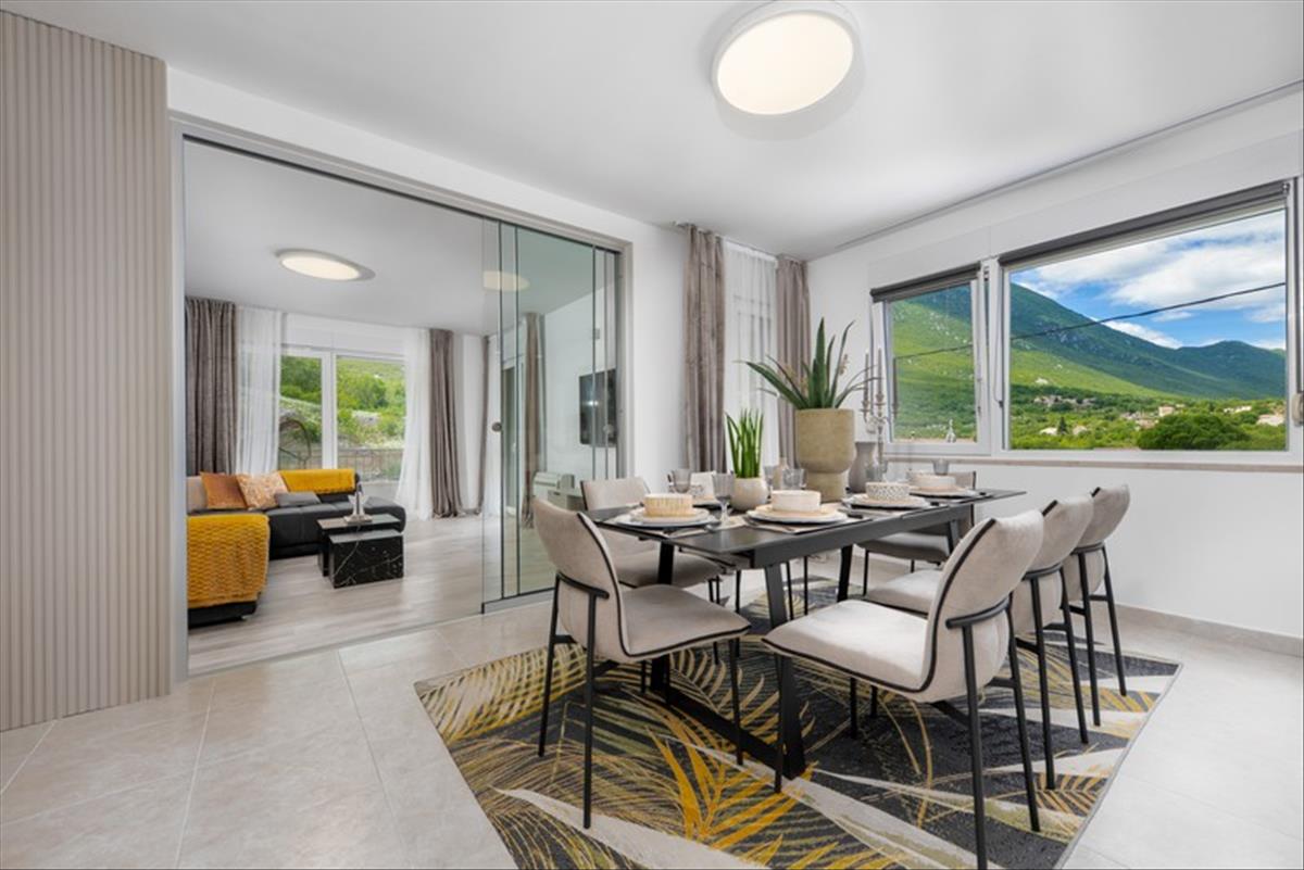 Újonnan épült villa medencével eladó a Rastovac kis falucskában, a Zagvozd község területén, csendes környezetet és kiváló megközelíthetőséget kínálva a Makarskai Riviérához. a ház összesen 300 m² lakóterülettel rendelkezik, és egy 500 m²-es parkosított telken helyezkedik el, elegendő helyet biztosítva a kényelmes élethez és a kültéri szórakozáshoz.