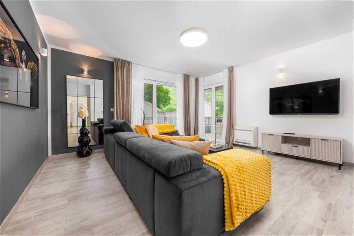 A földszinten egy tágas garázs található két jármű számára, egy szauna, egy fitneszterem, egy mosókonyha és egy egyszobás apartman, így ez a szint ideális vendégek, nagycsalád vagy további bérbeadás céljára.