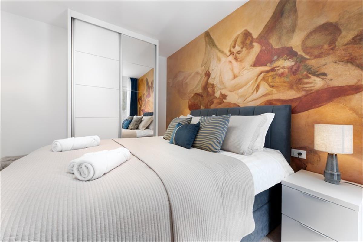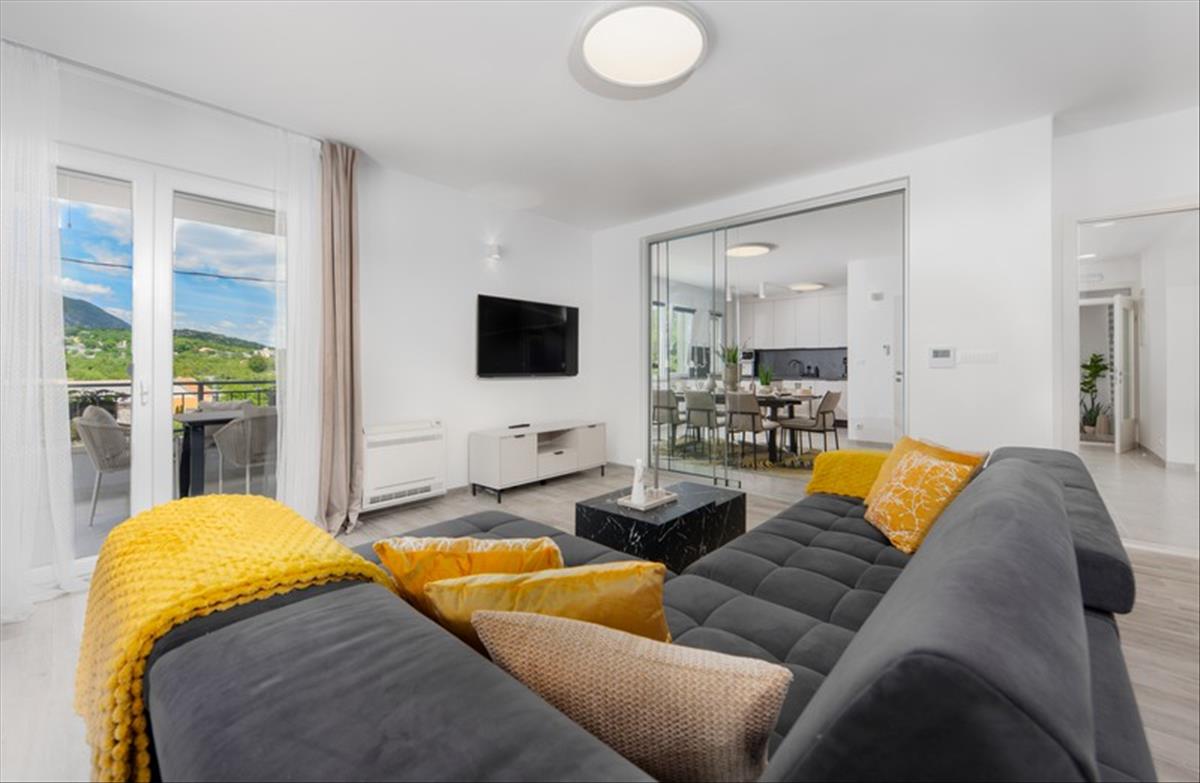 A felső szint egy nagy, háromszobás apartmanból áll, amely teljesen bútorozott, felszerelt és új, modern bútorokkal díszített, kész lakóteret kínálva. Ez a szint világos és tágas belső tereket biztosít, amelyek a mindennapi családi élethez vagy a luxus nyaralásokhoz lettek tervezve.