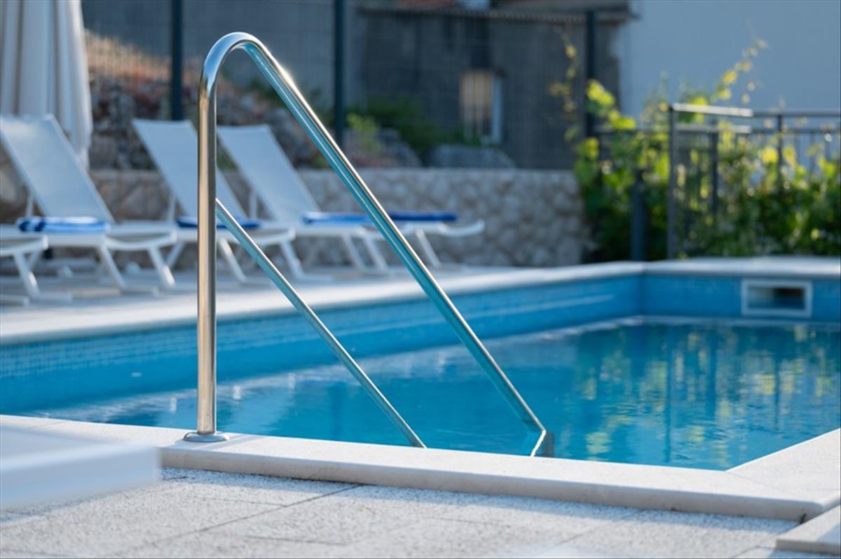 A telek északi oldalán egy tágas terasz található, egy 35 m²-es fűtött medencével, technikai helyiséggel, pavilonnal, grillezőhellyel és fedett kültéri étkezősarokkal, amely tökéletes környezetet teremt a pihenéshez és a szórakozáshoz az év minden szakában.