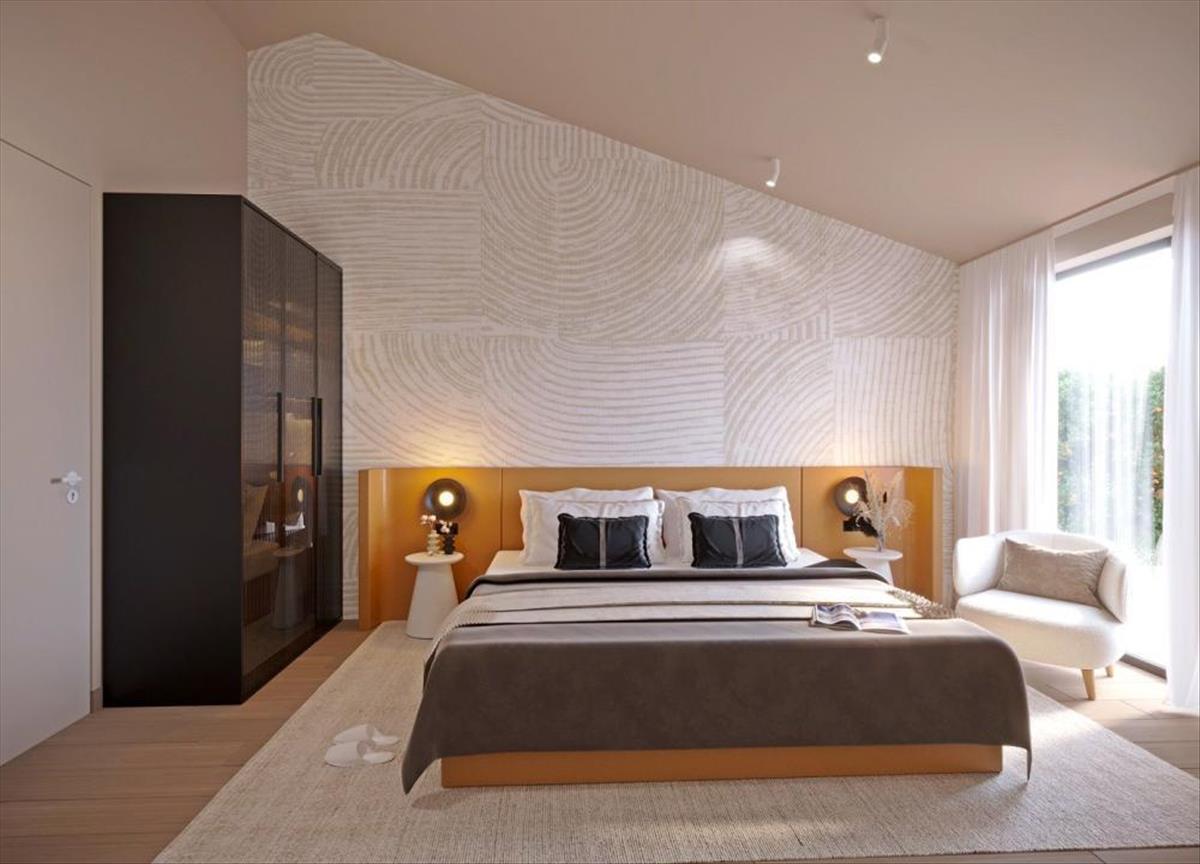 A modern belső tér, amelyben az enyhe és világos földszínek keverednek az elegáns feketével, két emeletre oszlik, összesen 191, 58 m² nettó területtel, és eleganciát és egyszerűséget sugároz, és magas szintű kényelmet biztosít.