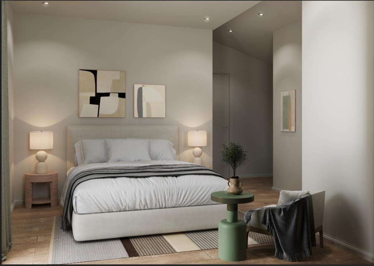 Továbbá a földszinten a bejárati előtérben található még egy vendég wc és egy lépcsőház is az emeletre, ahol két kényelmes és tágas hálószoba található. Minden hálószobához saját fürdőszoba tartozik, és hozzáférés a közös teraszhoz.