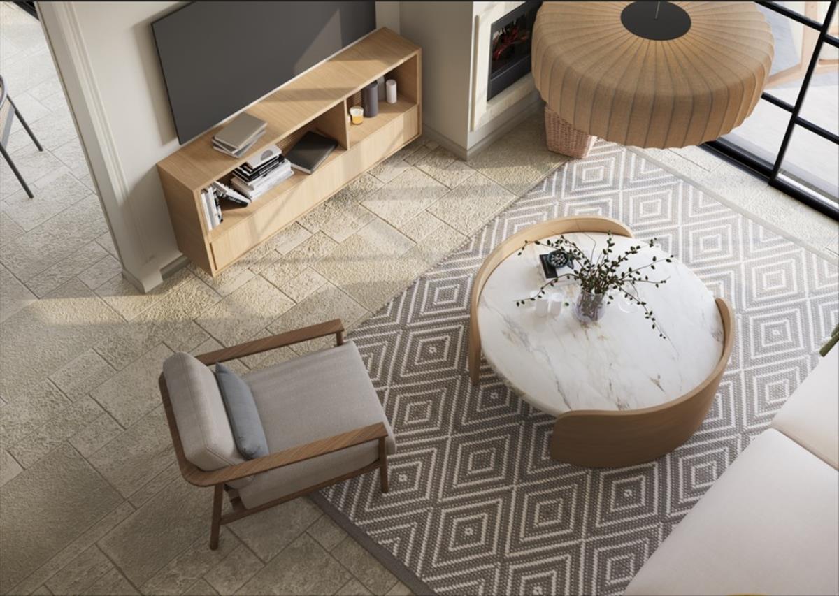 A földszinten egy előtér található, amely a válaszfalak nélküli nyitott terű nappaliba vezet. Itt egy fatüzelésű kandallóval és üveg tolóajtóval ellátott, tágas nappaliból nyílik az udvarra és a medencére, valamint kilátás nyílik az udvarra. a nappali szomszédságában található egy nagy étkezős konyharész, melyből a fedett terasz is elérhető. Ezenkívül a földszinten található egy vendég hálószoba saját fürdőszobával és kijárattal az udvarra.