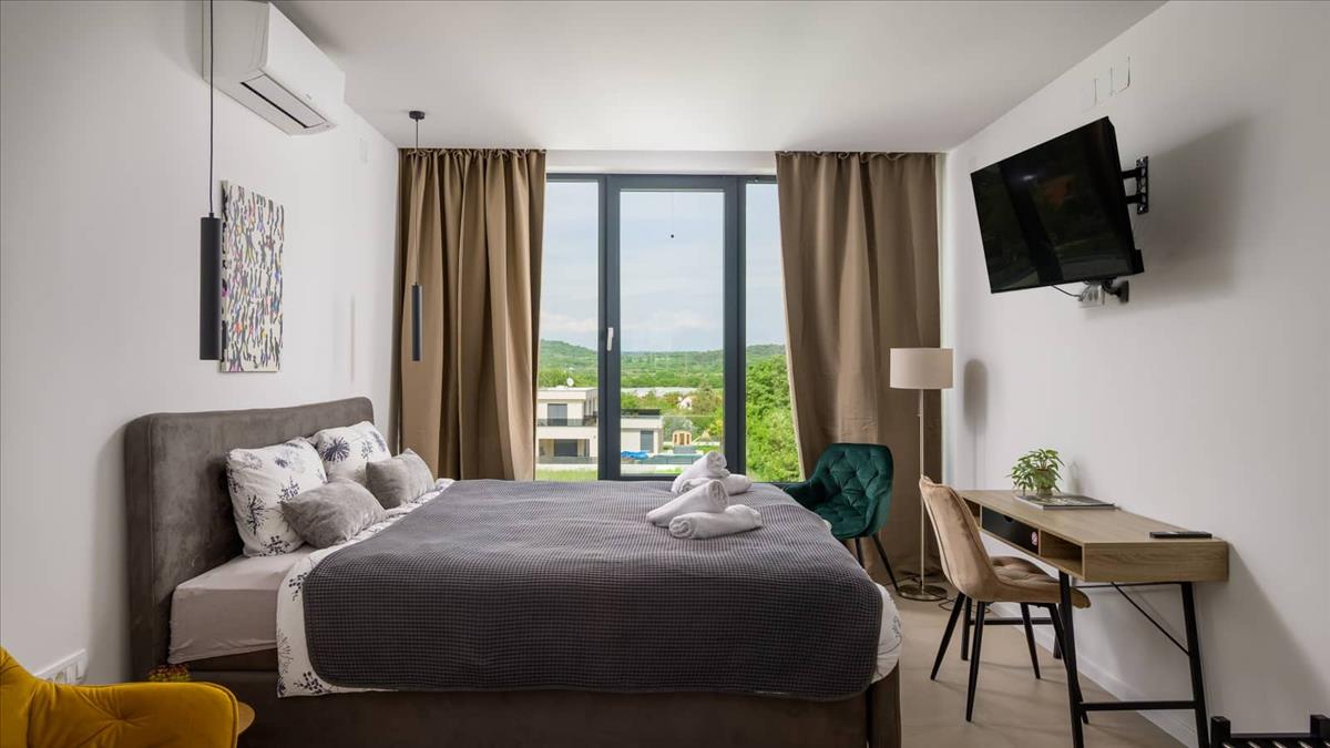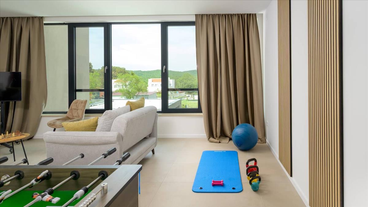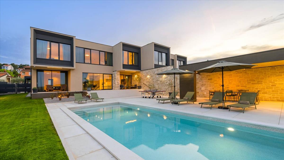 Élvezze a nyugodt báját egy egyedi, új, 216 négyzetméteres villa eladását egy csendes faluban Rovinj közelében, mindössze 6 kilométerre az Adriai-tengertől és a pezsgő városközponttól.Ez az elegáns, Istria területén található ikerház egy gyönyörűen parkosított, 550 négyzetméteres kerttel van körülvéve, amely a teljes magánéletet ötvözi a buja zölddel, így tökéletes nyugodt családi menedéket vagy felsőkategóriás elvonulást kínál Rovinj strandjai és történelmi helyszínei közelében. Kezdje a földszinten egy tágas bejárati területtel, amely átvezet egy vendég WC-be és egy világos, nyitott nappaliba, amely zökkenőmentesen kapcsolódik a Veneta Cucine márkájú modern konyhához és egy napfényes étkezőhöz. a padlótól a mennyezetig érő üvegfalak az egyik oldalon futnak, lenyűgöző kertre néző kilátást keretezve és természetes fénnyel árasztva el a szobákat egész nap. Ezen a szinten található a fő hálószoba saját fürdőszobával és közvetlen kertkapcsolattal a lustálkodós reggelekhez, valamint egy praktikus tárolószoba külső bejárattal, hogy rendben tartsa a dolgokat. Menjen fel a lépcsőn a folyosóra, ahol két kényelmes hálószoba található, mindegyik saját fürdőszobával, légkondicionálóval és TV-vel a kényelmes tartózkodás érdekében, valamint egy sokoldalú, 42 négyzetméteres bónusz szoba, amely jelenleg edzőteremként vagy játszóhelyként van berendezve, és könnyen átalakítható az igényeinek megfelelően – talán otthoni irodává vagy extra társalgóvá. Az egész villa korszerű elektromos padlófűtési rendszerrel rendelkezik, amely Wi-Fi alkalmazással vezérelhető, és minden szobában egyedi légkondicionálókkal van párosítva, így a kényelem állandó marad Horvátország meleg nyári hónapjaiban és enyhe telein. Kint a kert végtelen pihenésre hív, egy 48 négyzetméteres medencével, amely só elektrolízissel működik, így kíméletes, alacsony karbantartású úszásokat biztosít, egy kültéri zuhanyzóval a gyors lemosáshoz, és egy 26 négyzetméteres fedett nyári konyhával, amely tökéletes a grillezéshez vagy a barátokkal való informális összejövetelekhez. Egy gondozott gyep automatikus öntözéssel friss érintést ad, míg két fedett parkolóhely biztonságban és szárazon tartja a járműveket. a biztonság elsődleges, anti-burglár ajtókkal és ablakokkal, videó megfigyeléssel, riasztókkal és tűzérzékelőkkel, hogy megvédje a nyugalmát. Ráadásul a rendszer fel van készítve napelemekre és elektromos jármű töltőállomásra, így környezetbarát és jövőbiztos. Teljesen bútorozott és felszerelt az azonnali költözéshez, ez a luxus villa Rovinj közelében modern funkcionalitást és időtlen stílust kínál Istria napfényes mediterrán környezetében – legyen szó családi boldogságról vagy prémium bérlésről Horvátország tengerparti központjában. Teljes 1/1 tulajdonjog, nincs jelzálog és teljes papírmunkával a folyamat egyszerű. Lépjen kapcsolatba velünk még ma további részletekért vagy a megtekintés megszervezéséhez – itt vagyunk, hogy segítsünk Önnek megszerezni elegáns istriai menedékét. Ref: RE-U-38708