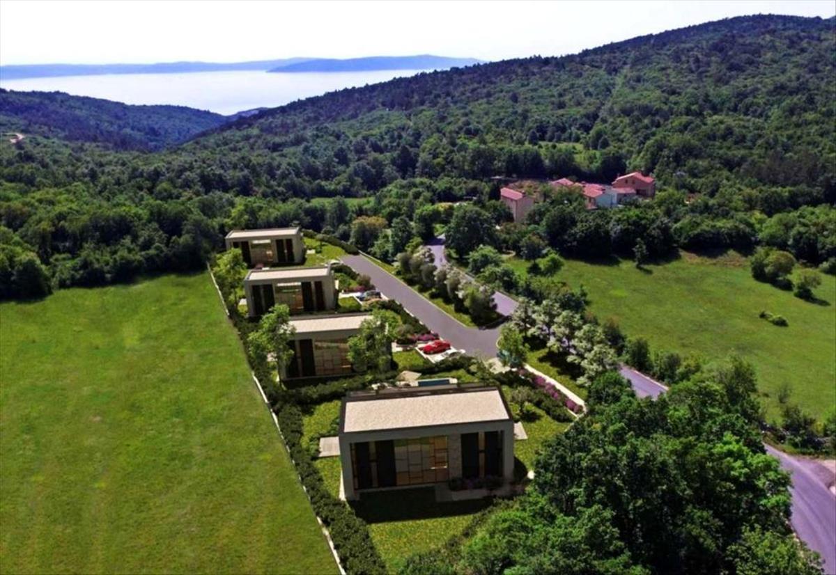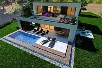 Labin városától nem messze eladó egy modern kialakítású, úszómedencés villa. Több új, modern, hasonló kialakítású villából álló komplexumhoz tartozik, 750 000-900 000 euróért.