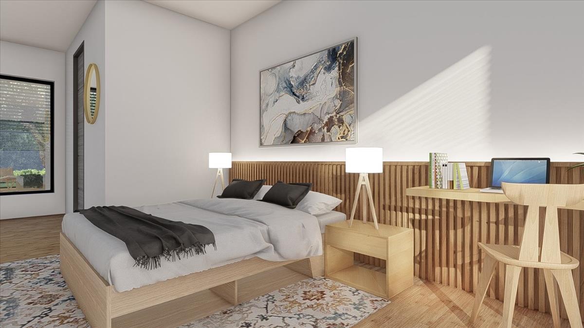 Ez az egyszintes, lapos tetős ház a funkcionalitásra, kényelemre és a kortárs életstílusra helyezi a hangsúlyt. Három hálószobájában, mindegyik saját fürdőszobával, magas szintű magánéletet biztosít minden családtag vagy vendég számára. Egy plusz toalett és előszoba egészíti ki a mindennapi szükségletekhez szükséges teret. a villa központi része egy nyitott térből álló nappali, konyhával és étkezővel, amely ideális a társasági élethez, pihenéshez és a természetes fény élvezetéhez, amely betölti a teret. a nappali egy nagy fedett teraszra vezet, amely tökéletes a reggeli kávéhoz, csillagok alatti vacsorákhoz vagy nyári összejövetelekhez.