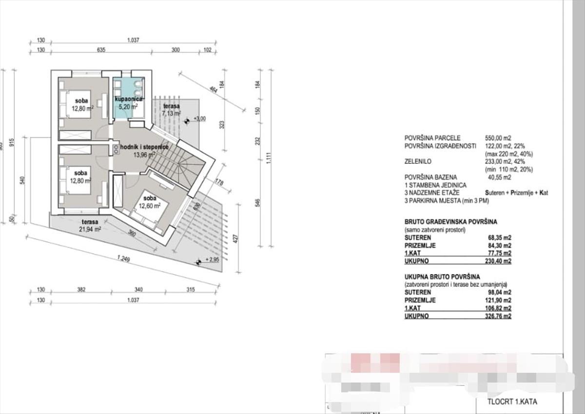 - Telekterület:550 m2