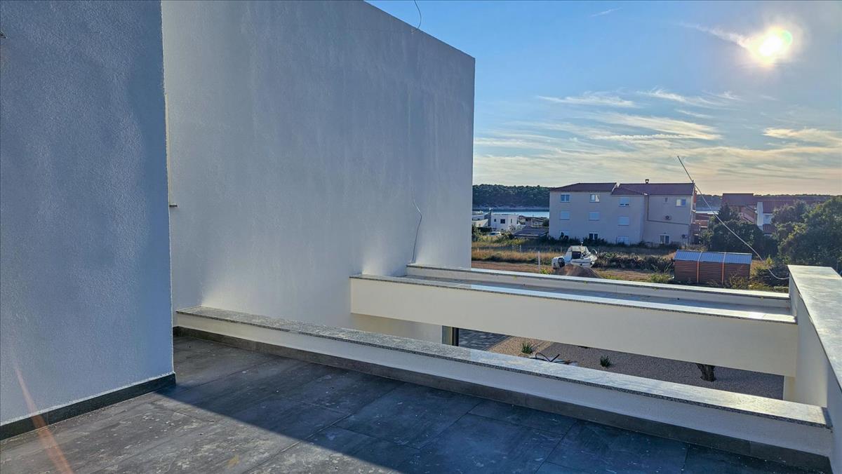 Belső lépcső vezet az első emeletre, ahol két luxus hálószoba található, mindkettő saját fürdőszobával és kijárattal rendelkezik a privát tetőteraszokra, gyönyörű kilátással a Barbat-csatornára.