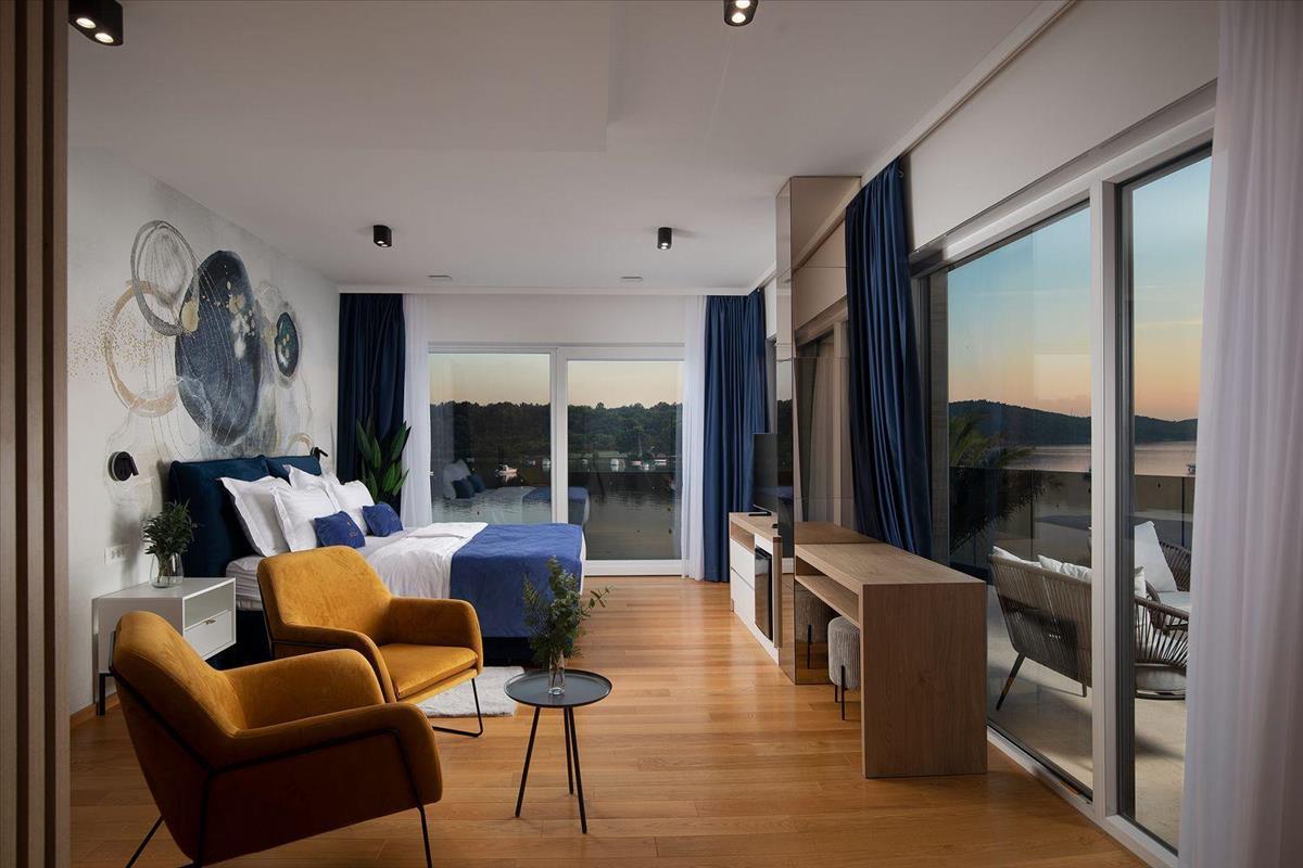 A lépcsők az első emeletre vezetnek, ahol három hálószoba található, amelyek többsége lenyűgöző tengerre néző kilátással rendelkezik. Minden hálószobának saját fürdőszobája van, és maximális kényelmet biztosít a designja és felszereltsége révén.