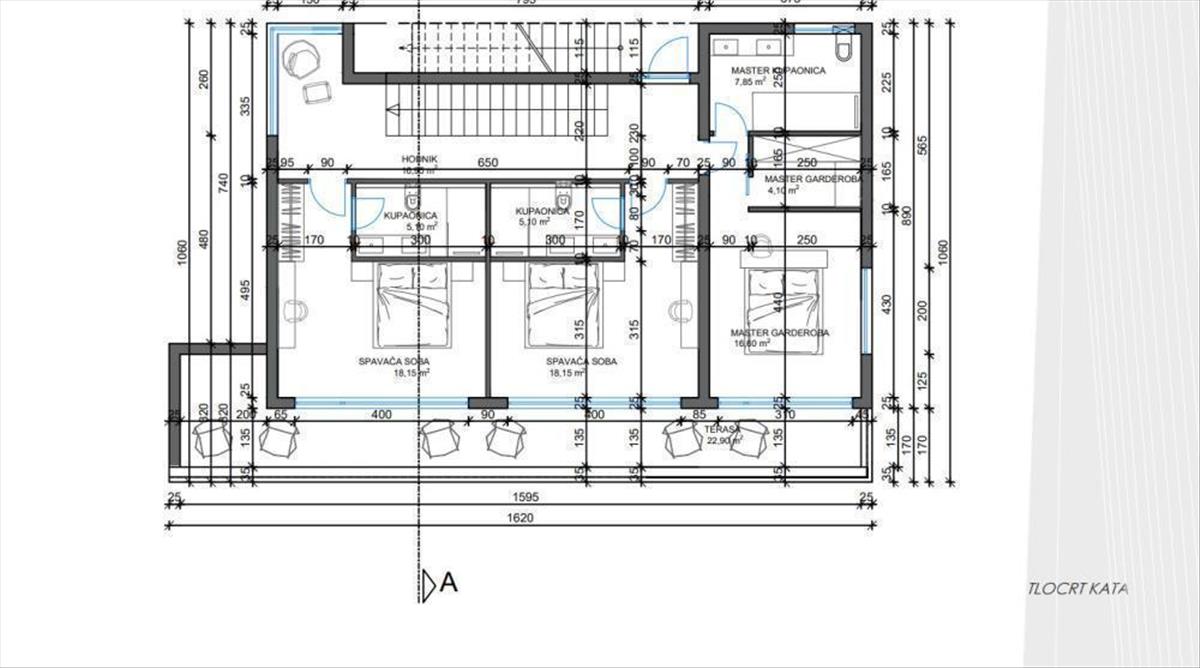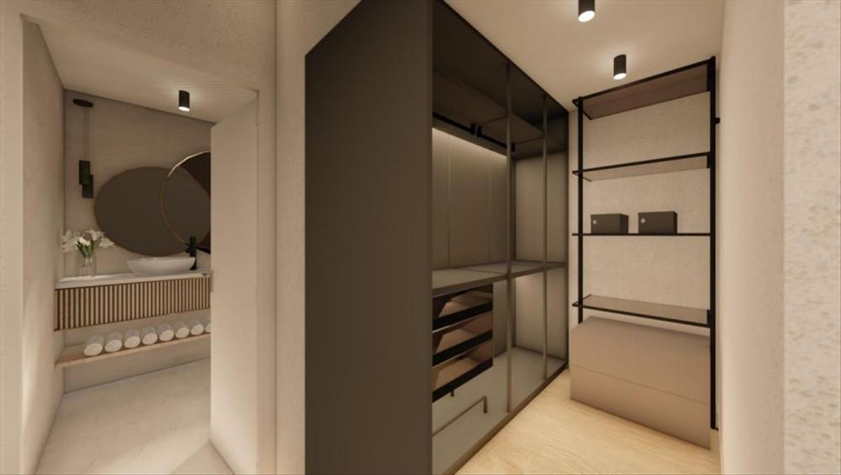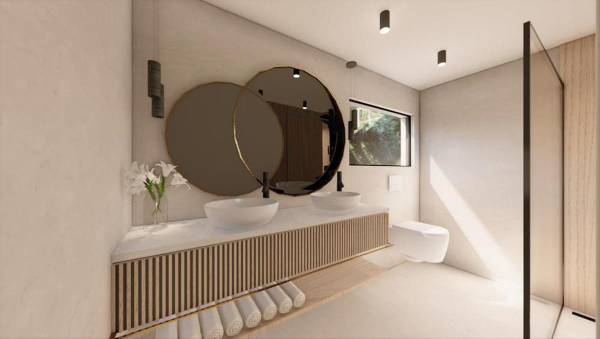 A felső szinten előszoba, három hálószoba, három fürdőszoba öltözővel, csodálatos tengerre néző terasz található.