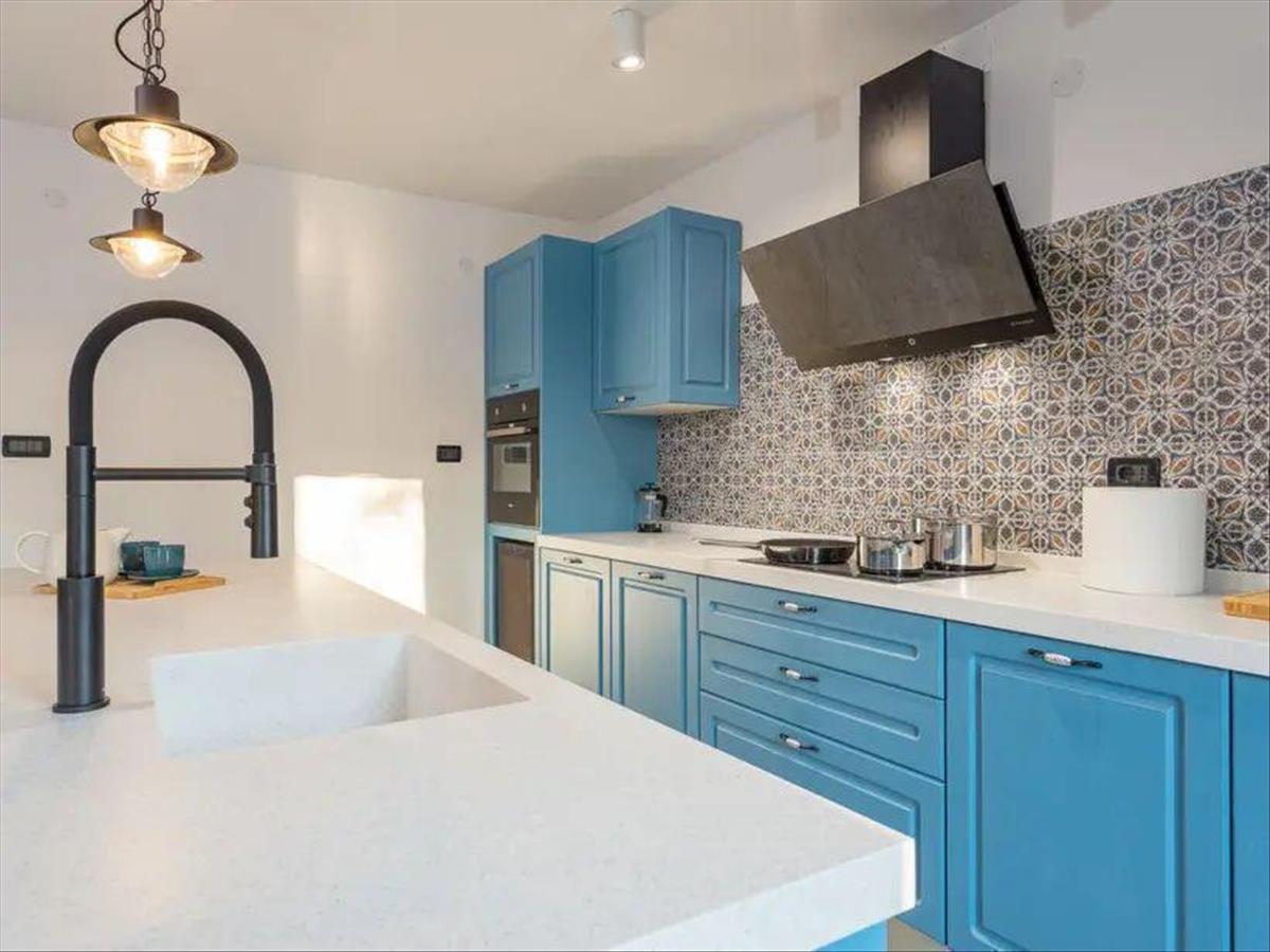 A földszinten egy gyönyörű konyha nagy étkezővel, szalon és fürdőszoba található. a földszint és az emelet közötti területen egy kis tároló helyiség található.