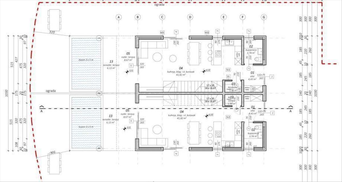 Az úszómedence mellett lesz egy elég nagy hely egy potenciális nyári konyha vagy grillező számára ülőalkalmatosságokkal.