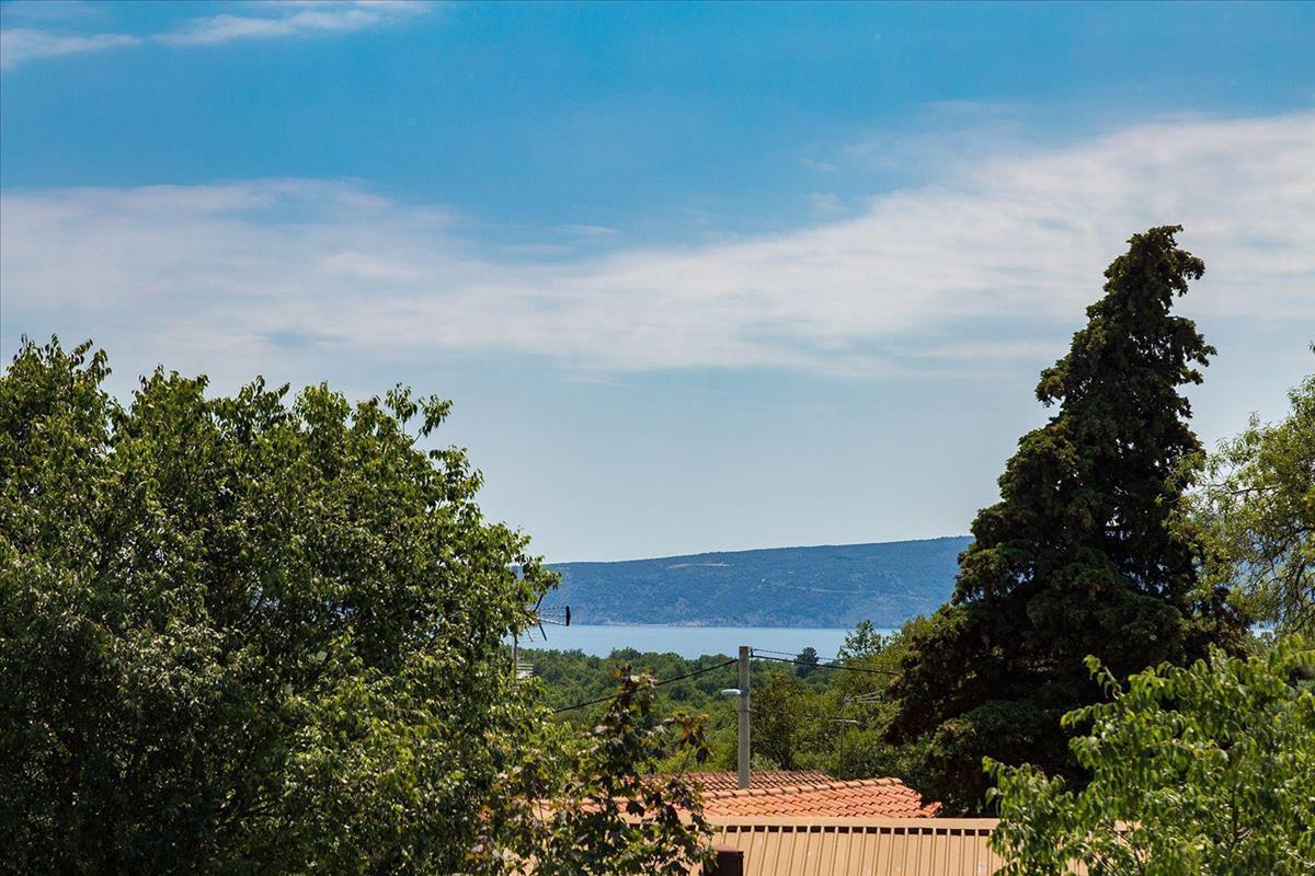 Ház úszómedencével egy csendes helyen Krk szigetén, kilátással a tengerre.