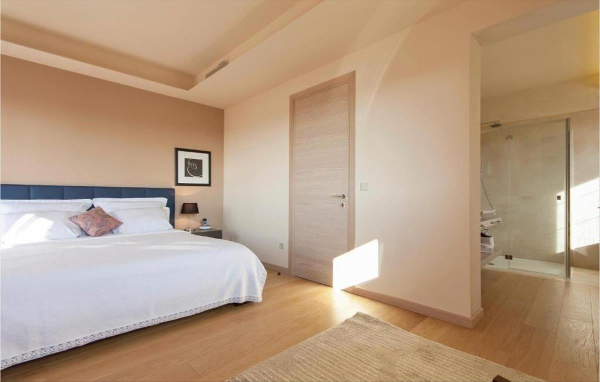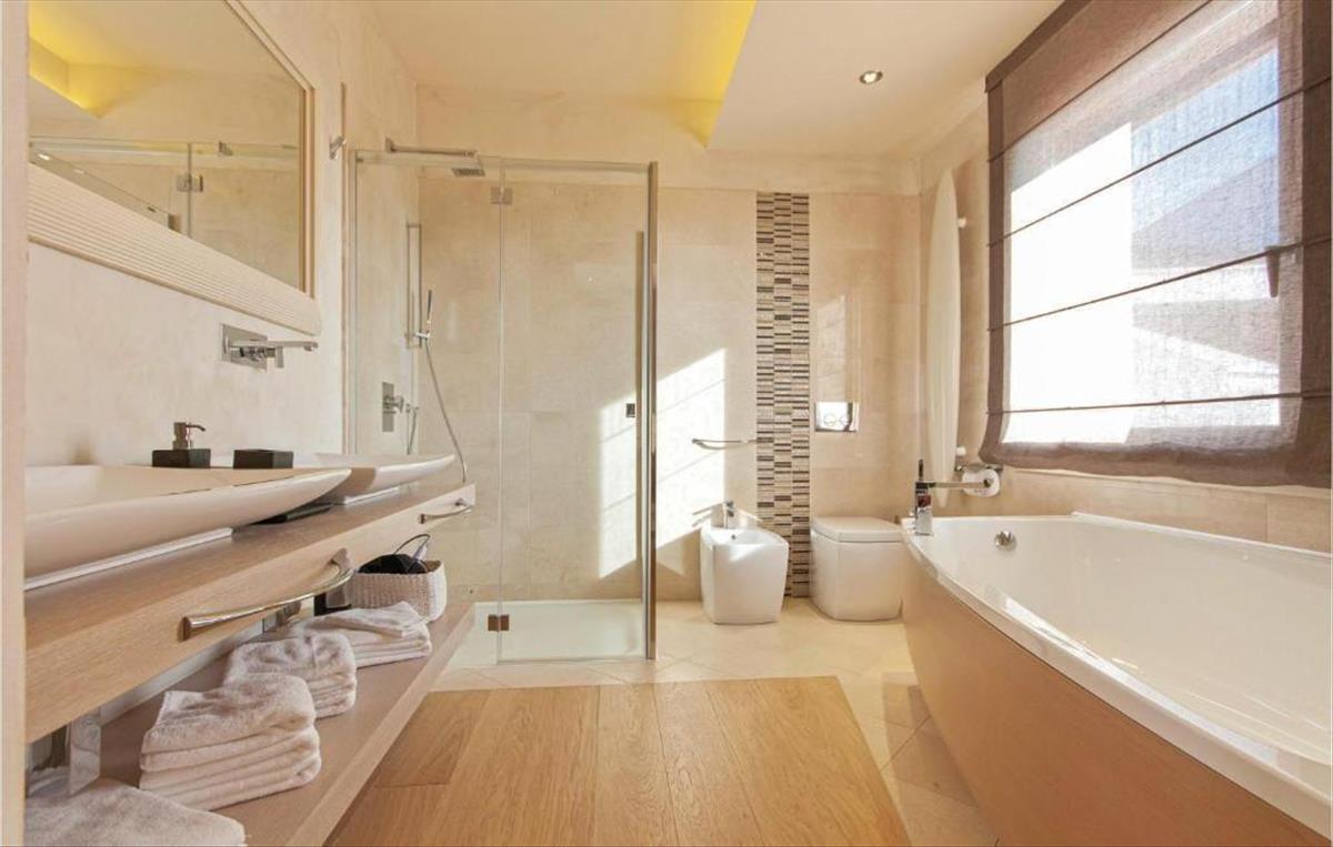 Felső emelet: három hálószoba, amelyek közül kettő saját fürdőszobával, gardróbbal és saját terasszal rendelkezik.