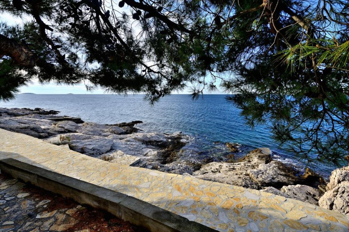 Ez a gyönyörű ház Primošten városának közelében található, közvetlenül a sétány mellett és egy természetes sziklás strand mellett, a tenger első vonalában (nincs út előtte).