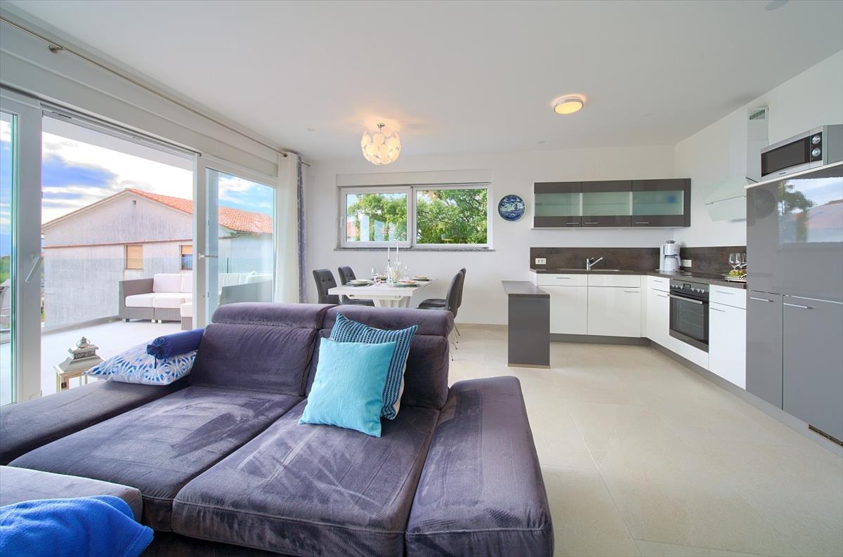 Teljesen bútorozott és kulcsrakész, ez a Krk szigeti ingatlan prémium kerámiával és parkettával, tartós pvc nyílászárókkal, minden egységben légkondicionálóval, SAT-TV-vel, tűzálló bejárati ajtókkal apartmanonként, átfogó tűzjelző és szellőző rendszerrel, valamint központi napenergiás padlófűtéssel rendelkezik. a varázslatos udvar emeli a kültéri életet egy árnyékos pergolával, beépített kőgrillel, kültéri konyhával és egy lenyűgöző medencével, amelyet egy külső zuhanyzó kísér, mindez nyolc dedikált parkolóhellyel biztosítja a vendégek zökkenőmentes érkezését.