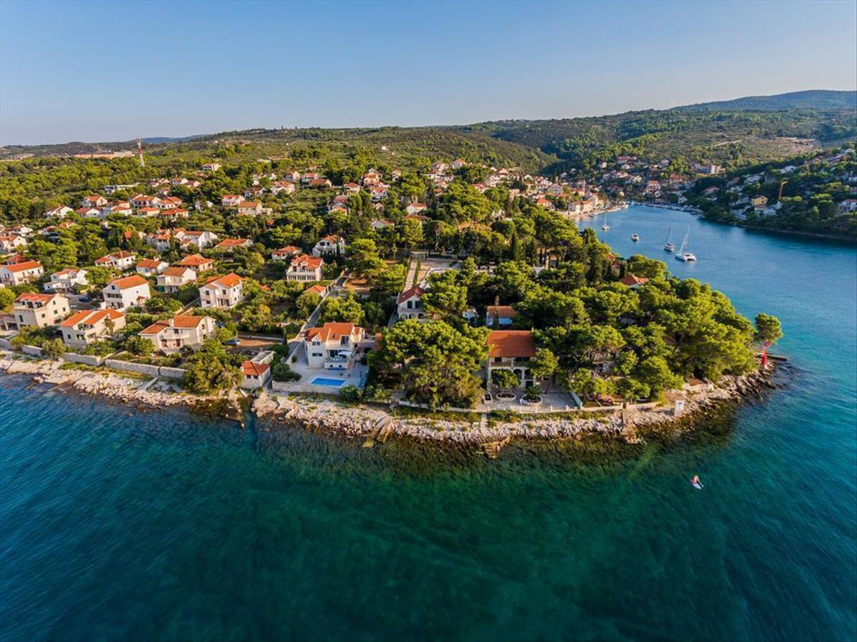 Díszített kert, parkoló több autónak, terasz a napozáshoz a medence mellett, valamint grillezési lehetőség a tenger mellett.