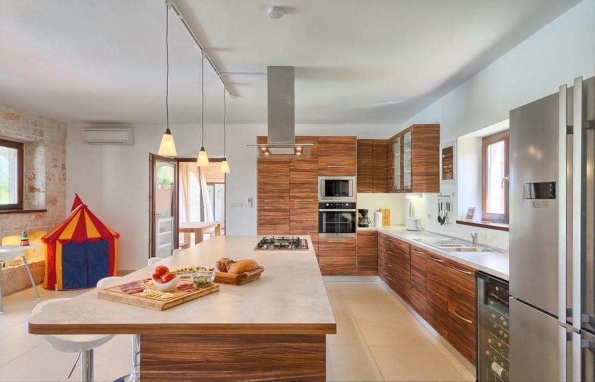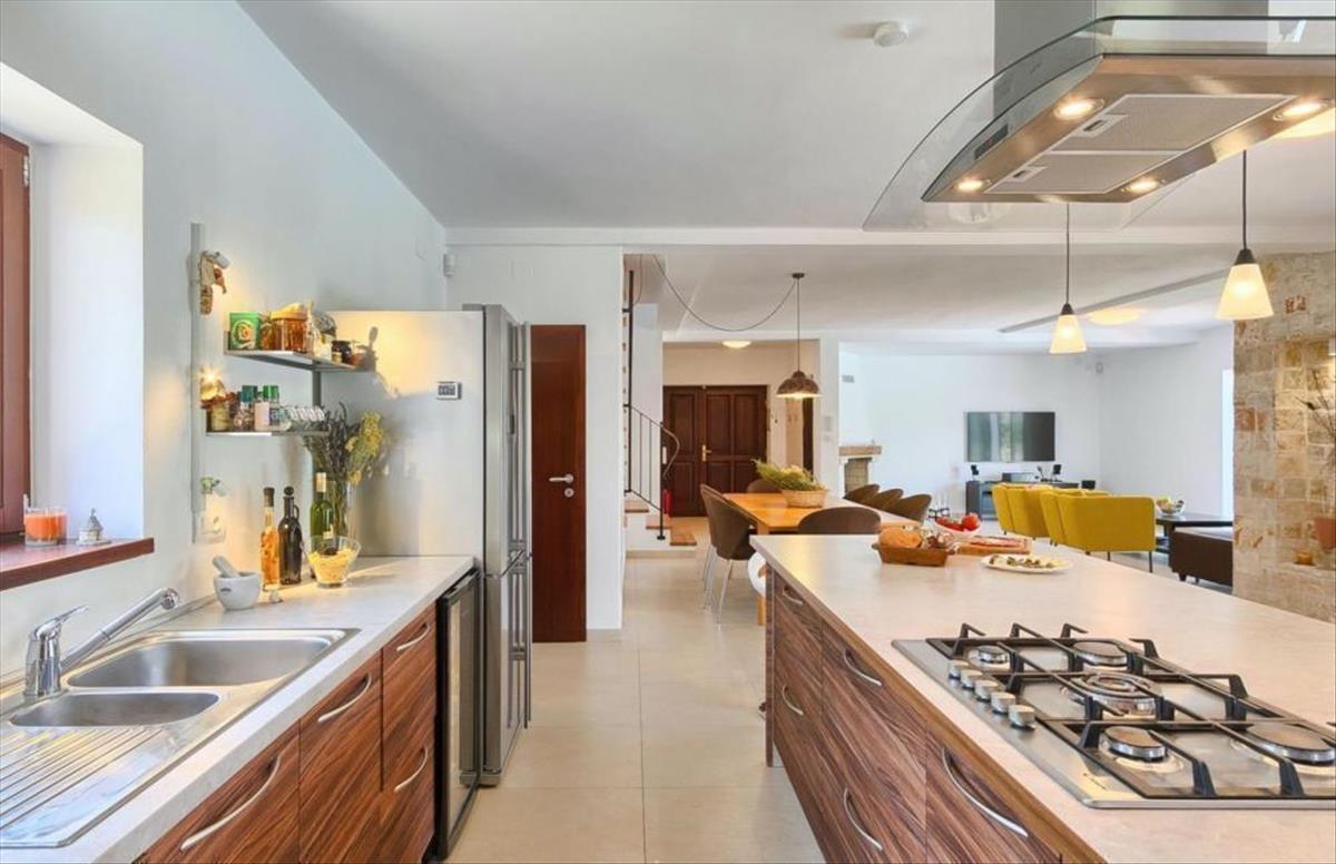 A falu csendes részén található ez a gyönyörű villa a modern belsőépítészet és a hagyományos mediterrán építkezés kombinációja, és többek között nyári konyhát is tartalmaz.
