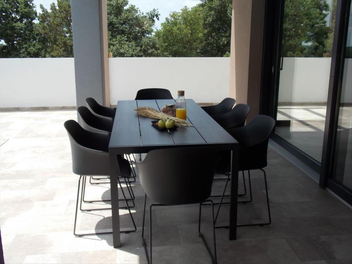 A földszinten található egy mosókonyha tárolóval, wc, a legmodernebb technikával felszerelt konyha, mint pl. Üvegkerámia főzőlapba integrált páraelszívó, beépített mikrohullámú sütő, sütő és hűtőszekrény. Egy fagyasztó, egy étkező és egy nyitott tér elv szerint kialakított nappali, ahonnan ki lehet jutni a nyári teraszra. Konyha grillezővel, 30m2-es medence és napozó rész.