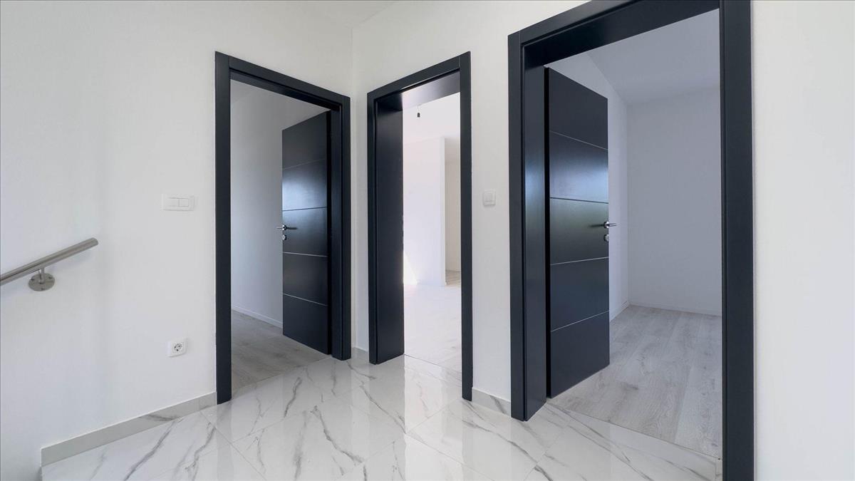 A felső szintre feljutva három hálószoba található, mindegyik saját fürdőszobával. Ezek közül kettőből terasz nyílik, míg a főhálószoba egy déli teraszra nyílik, ahonnan lélegzetelállító kilátás nyílik a tengerre. a villa földszintjén és a fürdőszobákban elektromos padlófűtés található. Ezen kívül a kertben három parkolóhely is található.
